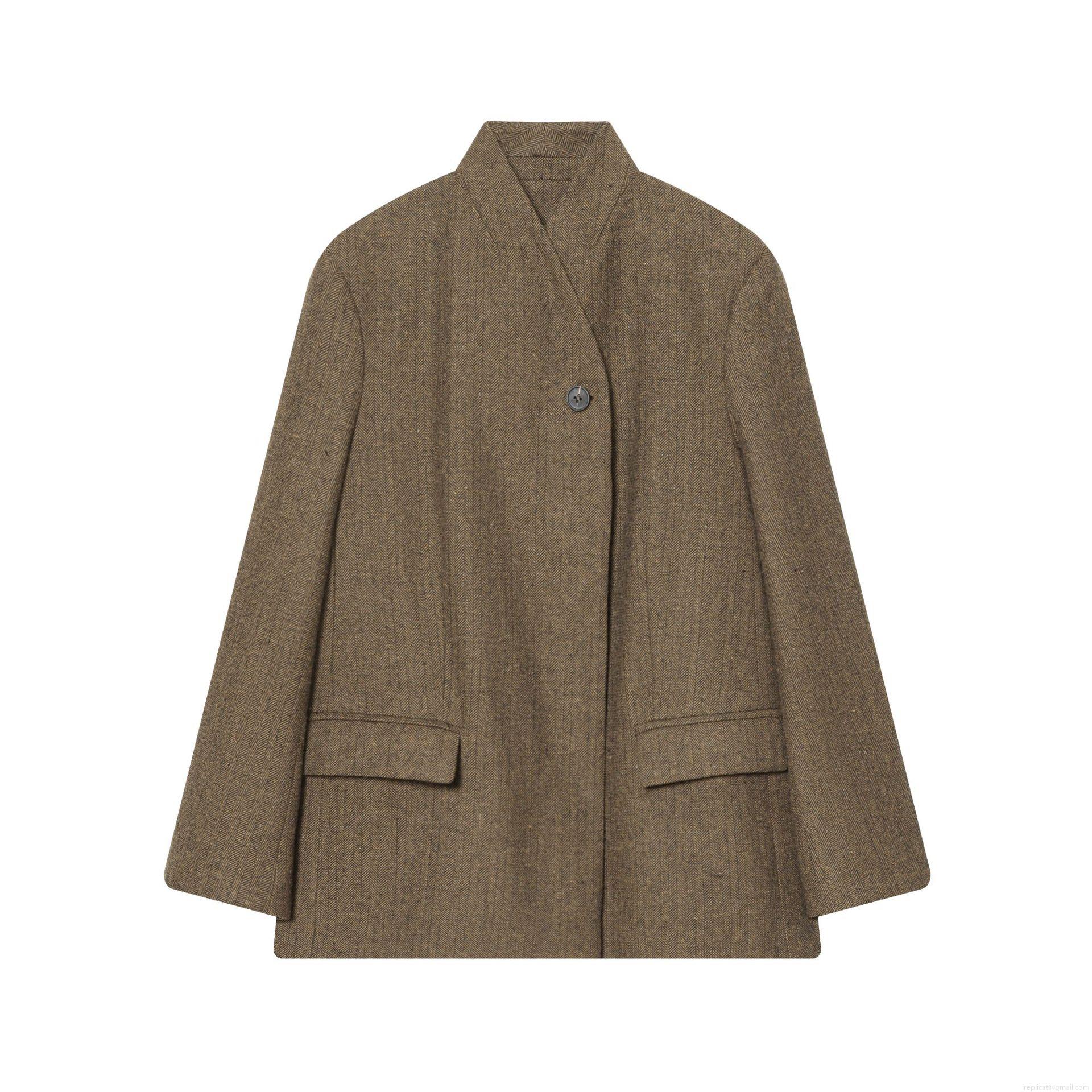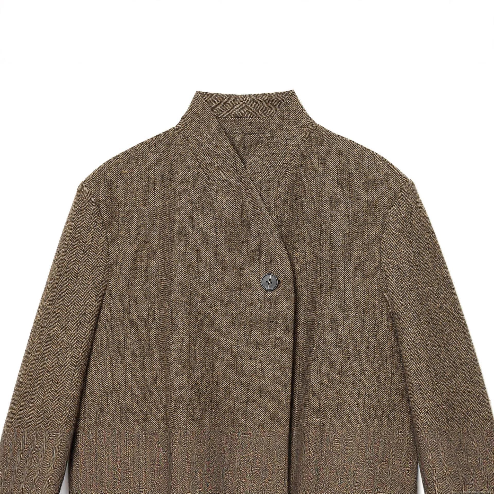 Women's Elegant Herringbone Blazer Vintage Brown Tweed Long Sleeve One Button Office Jacket With Pockets Classic Outwear