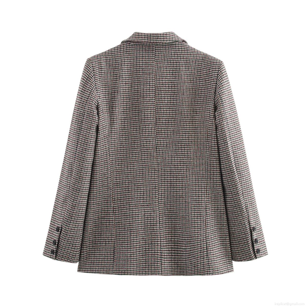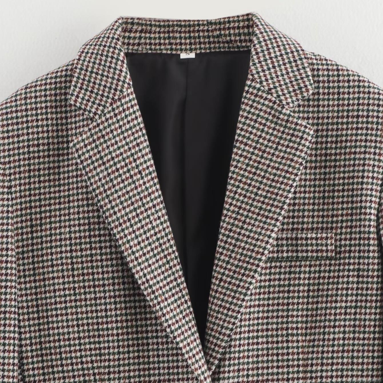 • Women's Elegant Houndstooth Blazer Jacket Single Breasted Lapel Collar With Pockets Loose Fit Polyester Outerwear For Office Work Commute Autumn Winter