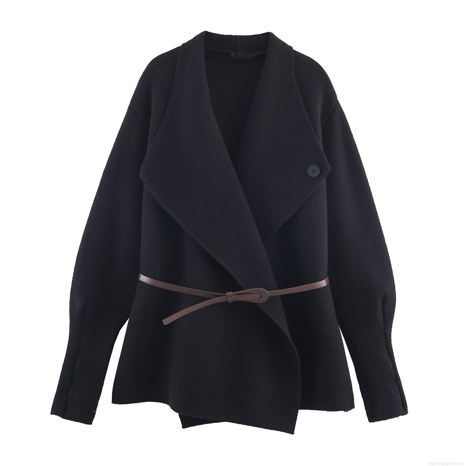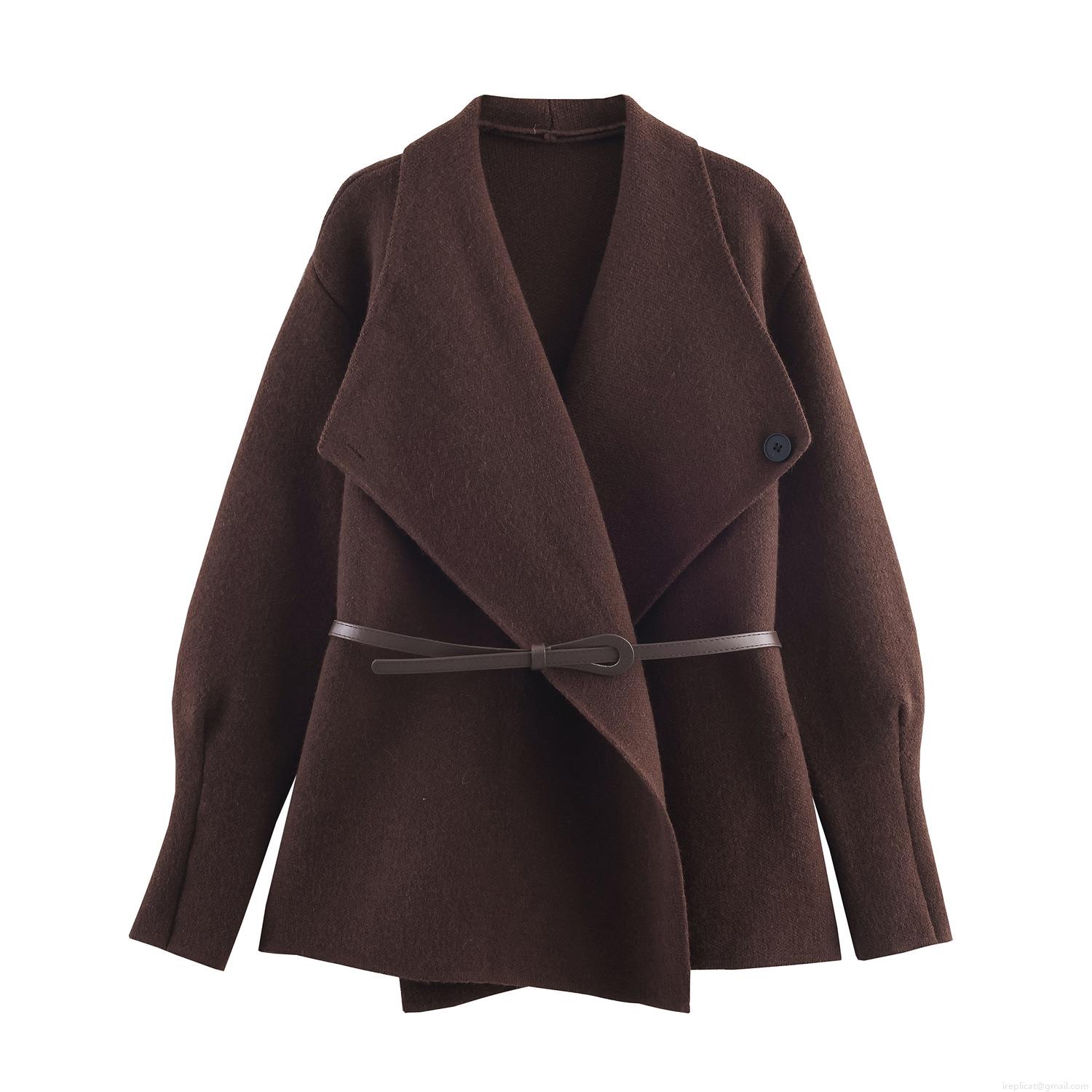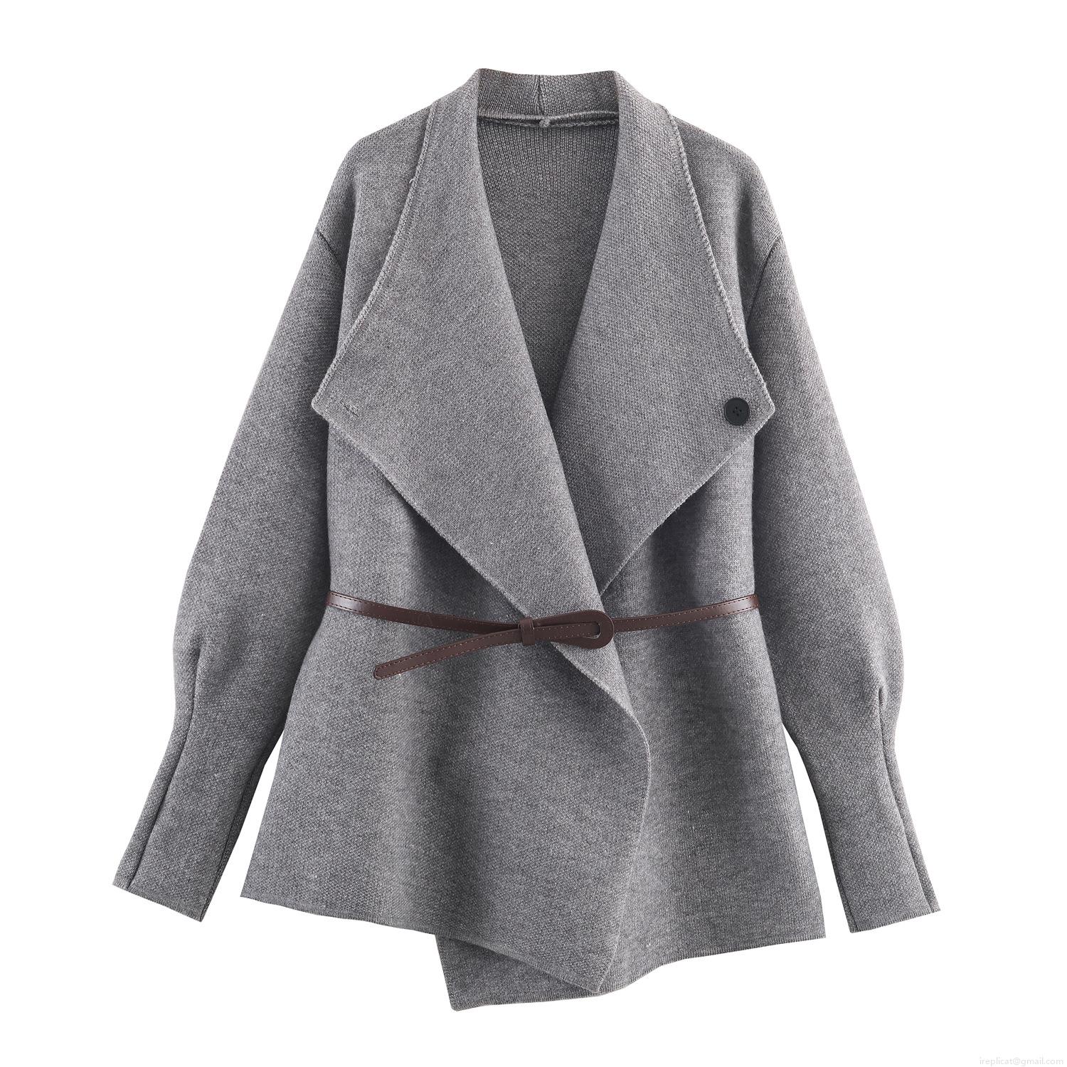 • Women's Elegant Knit Blazer Cardigan Long Sleeve V-Neck Solid Color Loose Coat With Belt For Autumn Winter Commute Office Lady Fashion Outerwear