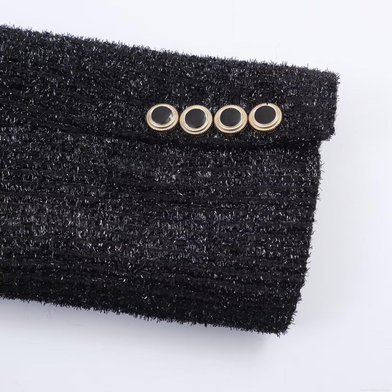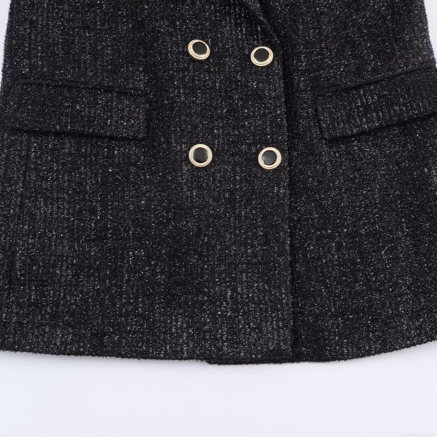 • Women's Elegant Metallic Yarn Tweed Blazer Double Breasted Black Suit Jacket Casual Office Long Sleeve Outerwear With Gold Buttons