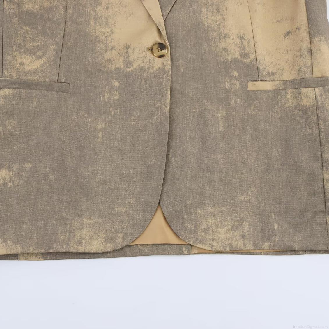 • Women's Elegant Minimalism Tie-Dye Printed Blazer Loose Fit Long Sleeve Polyester Spandex Casual Commuting Suit Jacket Outerwear