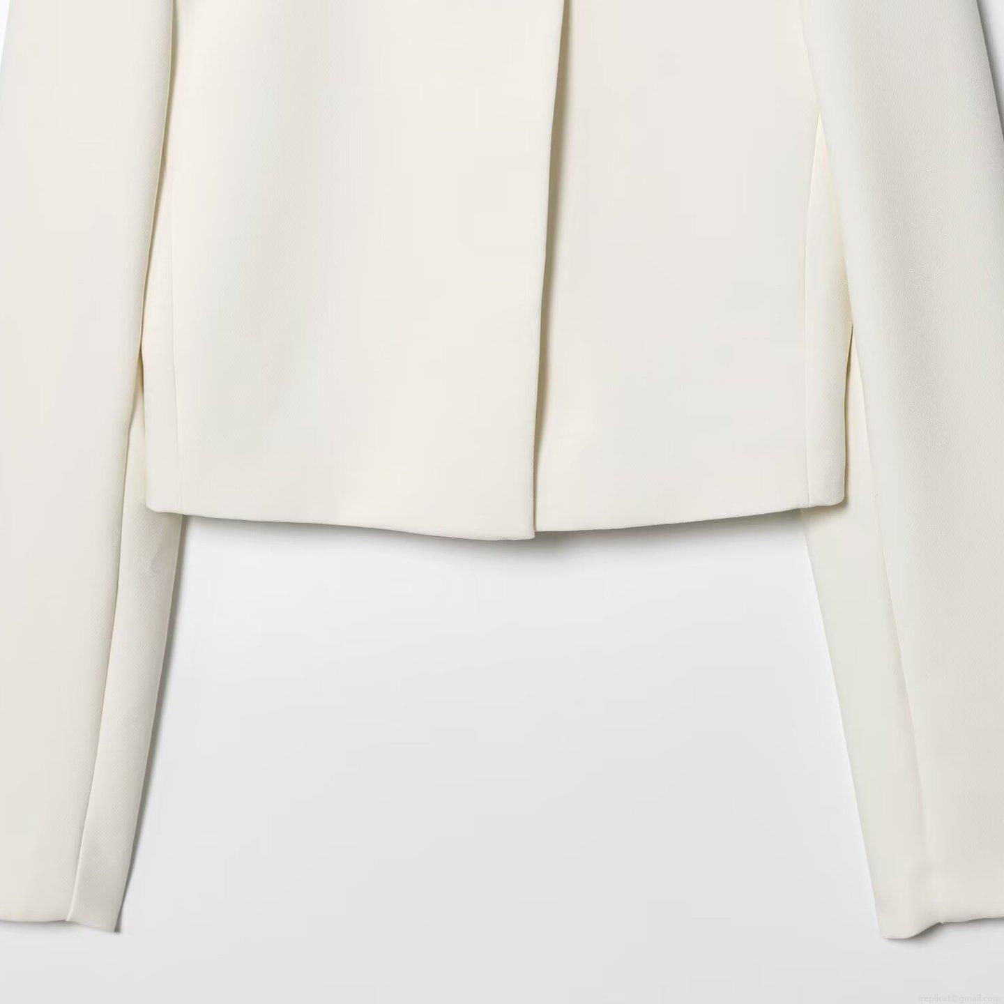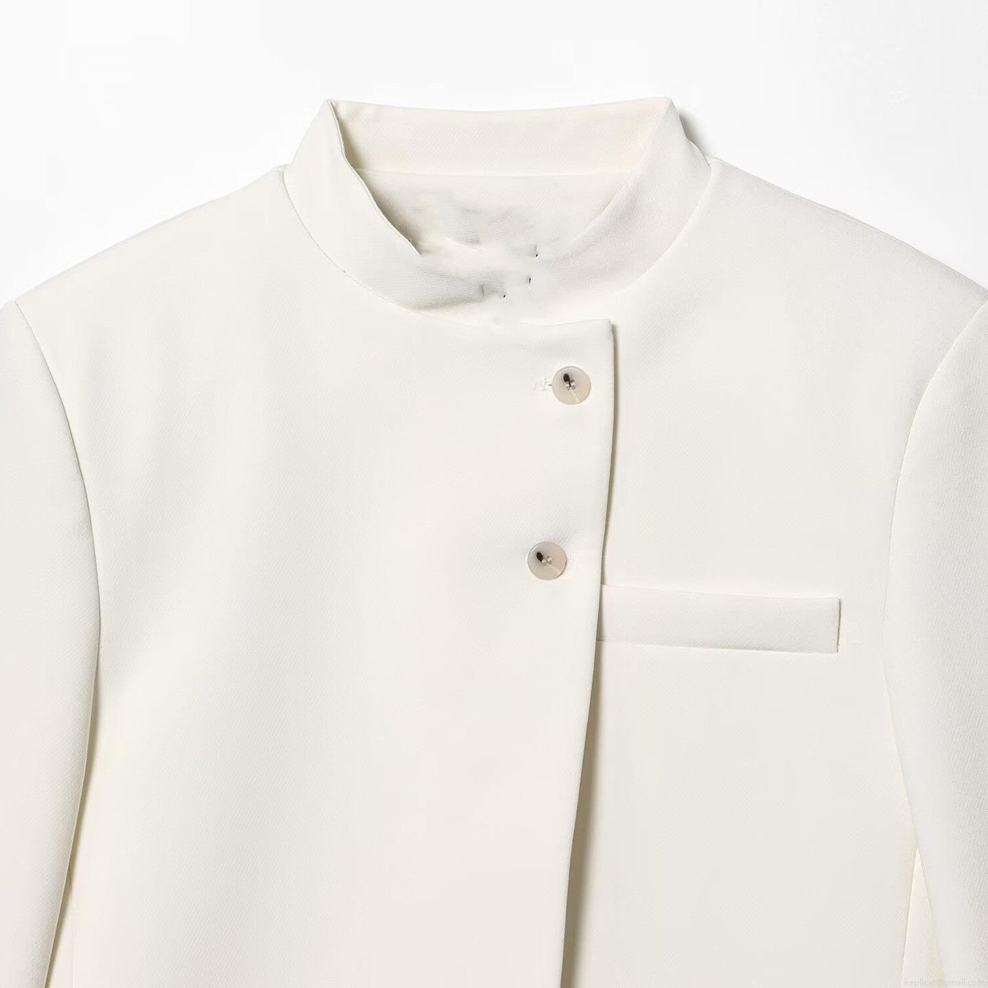• Women's Elegant Minimalist White Short Blazer Jacket Stand Collar Single Breasted Long Sleeve Commuter Office Lady Outerwear Top