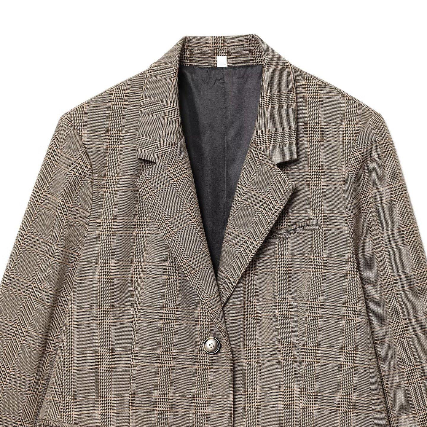 Checkered Pattern, Retro Plaid, Suit Collar, Single-breasted Single Button, Prince Of Wales