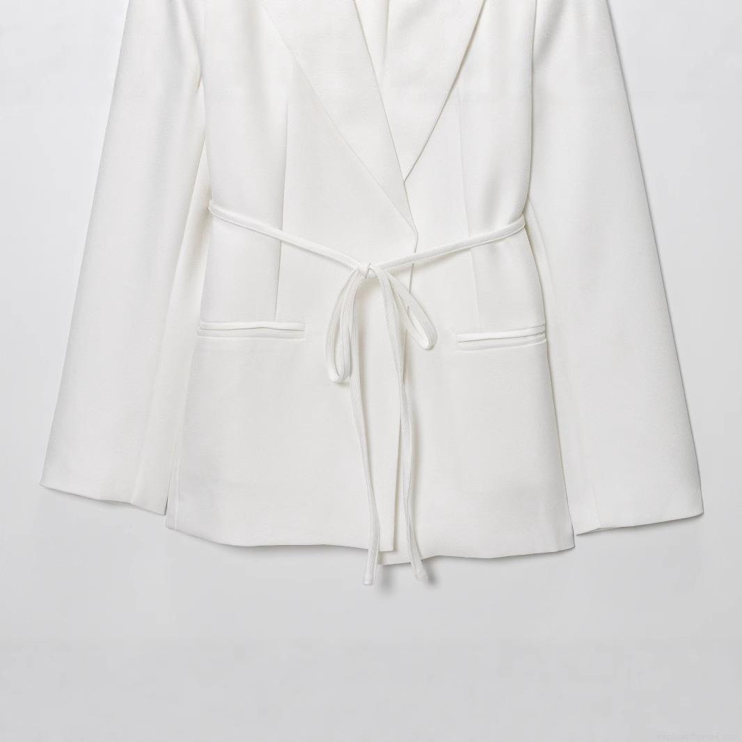 • Women's Elegant Polyester Blend Blazer Jacket With Waist Tie Belt Notched Lapel Long Sleeve Casual Commuter Suit Coat For Office Lady Work Party