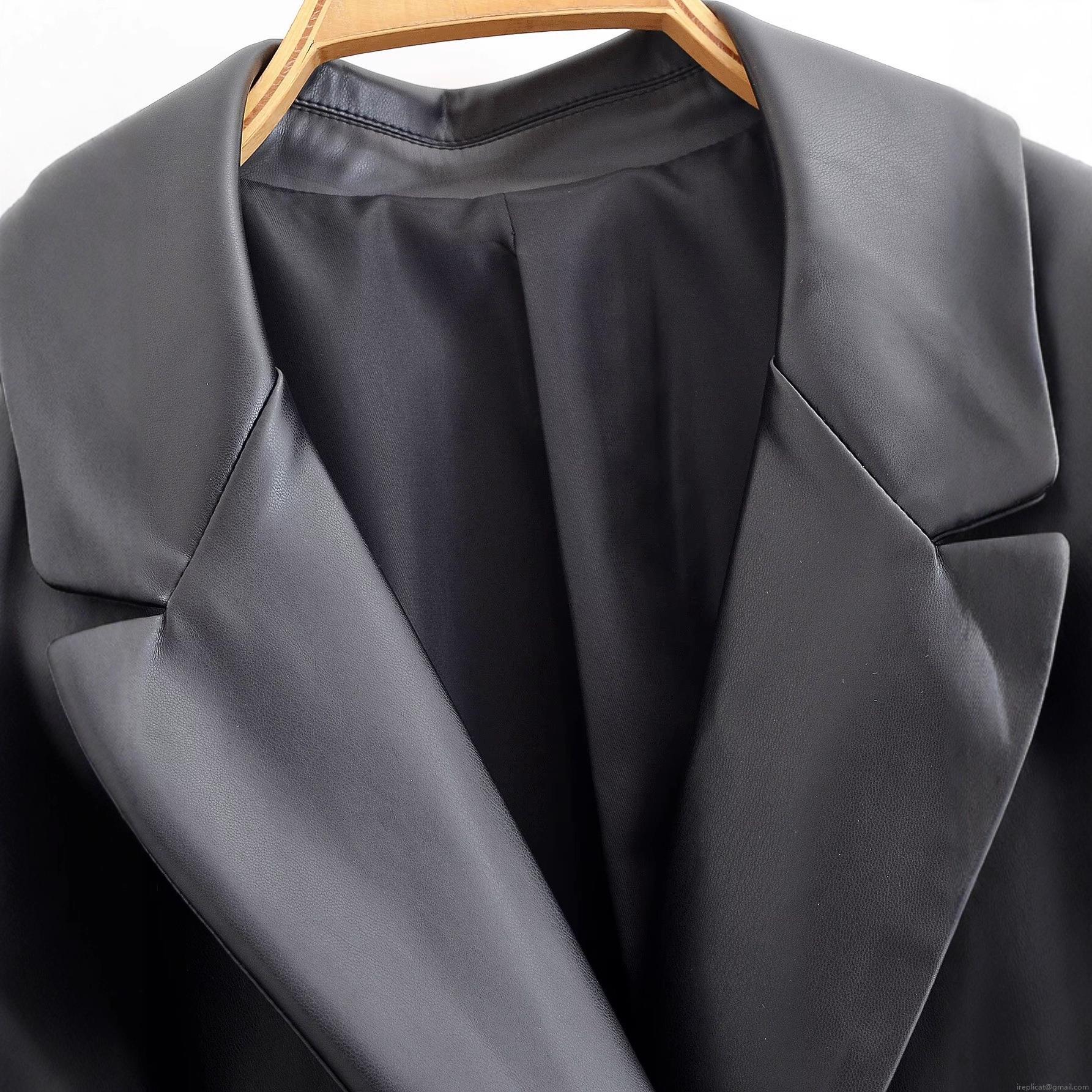• Women's Elegant PU Leather Blazer Jacket Slim Fit Lapel Long Sleeve Faux Leather Suit Coat With Pockets For Autumn Winter Streetwear Office Lady Black