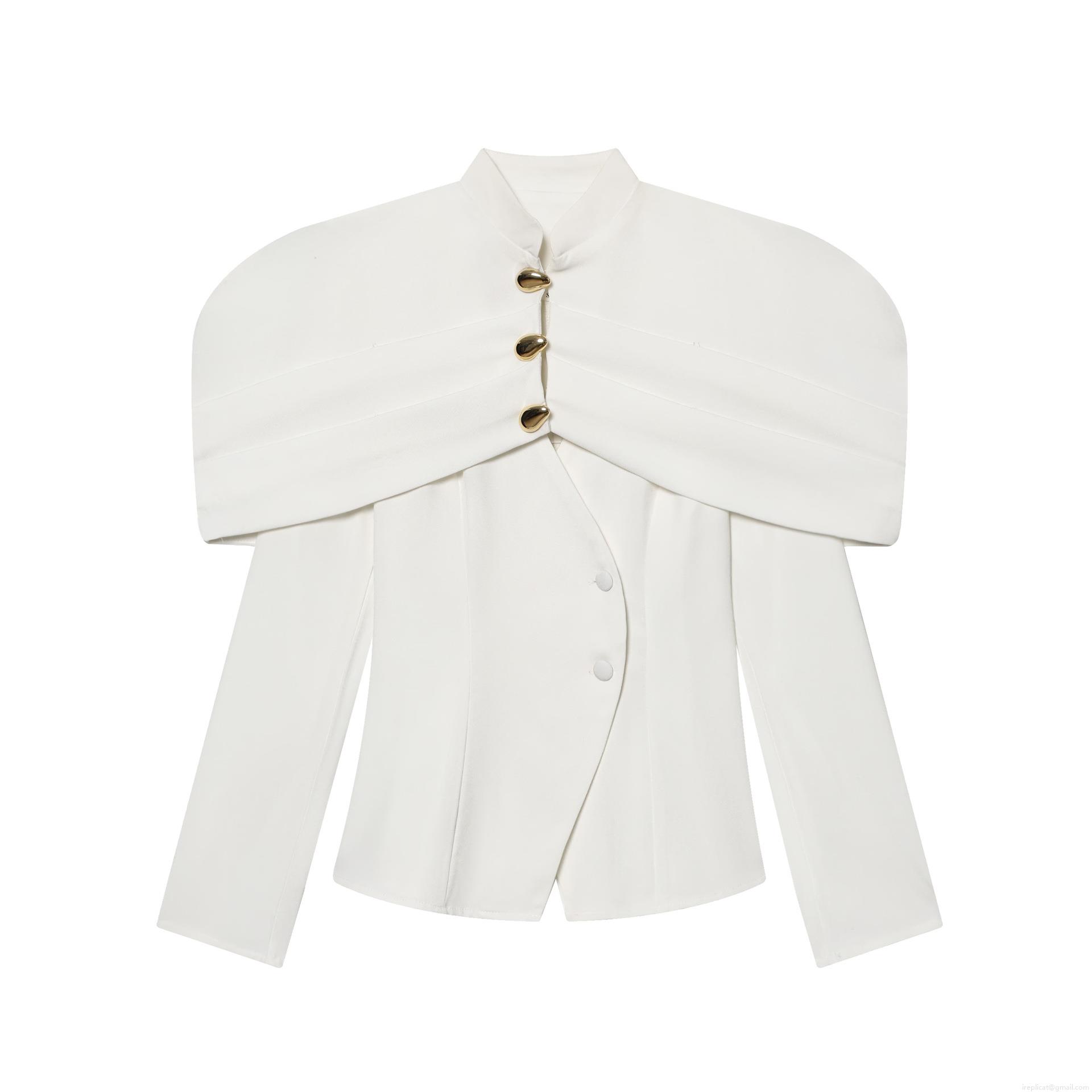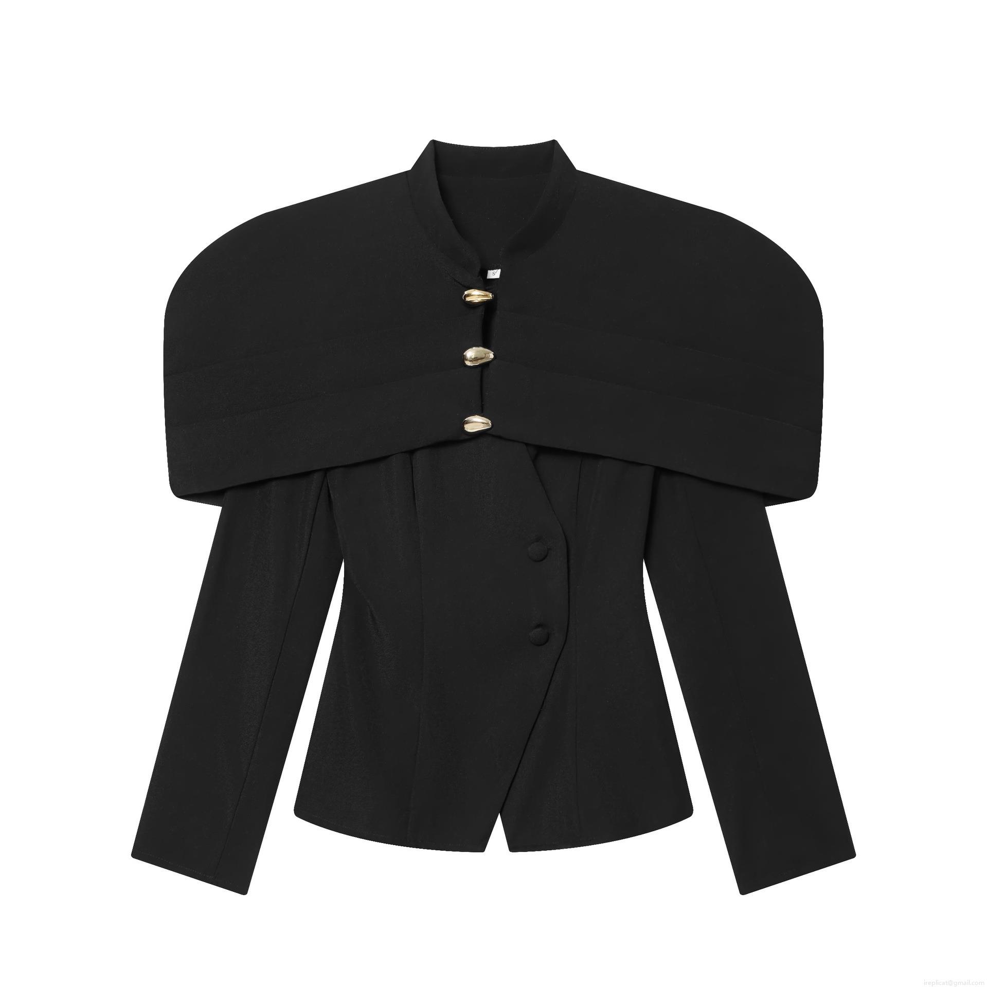 Solid Color, Waist shaping, Stacked Design, Gold Metal Buttons, Shawl Collar