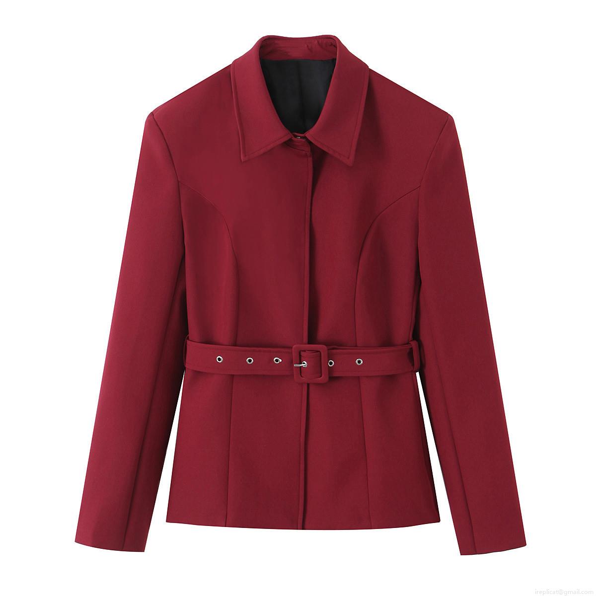 • Women's Elegant Slim Fit Blazer Jacket With Waistband Long Sleeve Lapel Hidden Button Wine Red Solid Color Office Suiting Outerwear Formal Party Blazer For Ladies