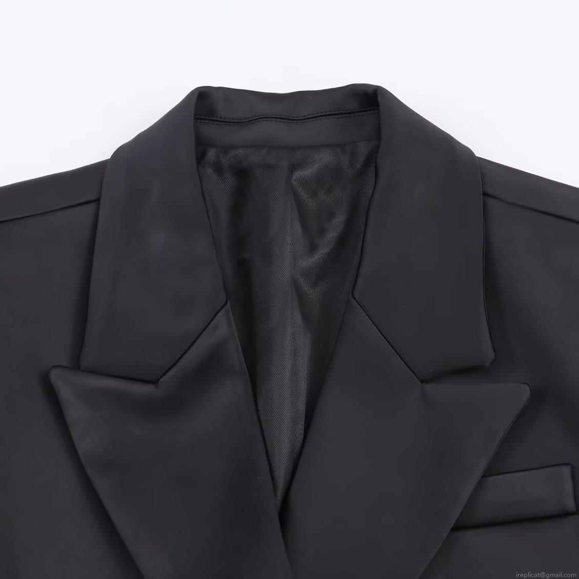 • Women's Elegant Slim Fit Double Breasted Blazer Jacket Fashion Satin Texture Polyester Long Sleeve Business Work Office Suit Coat