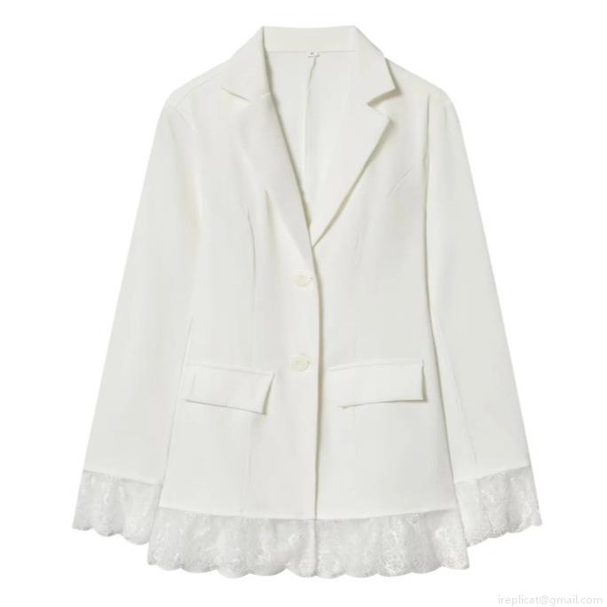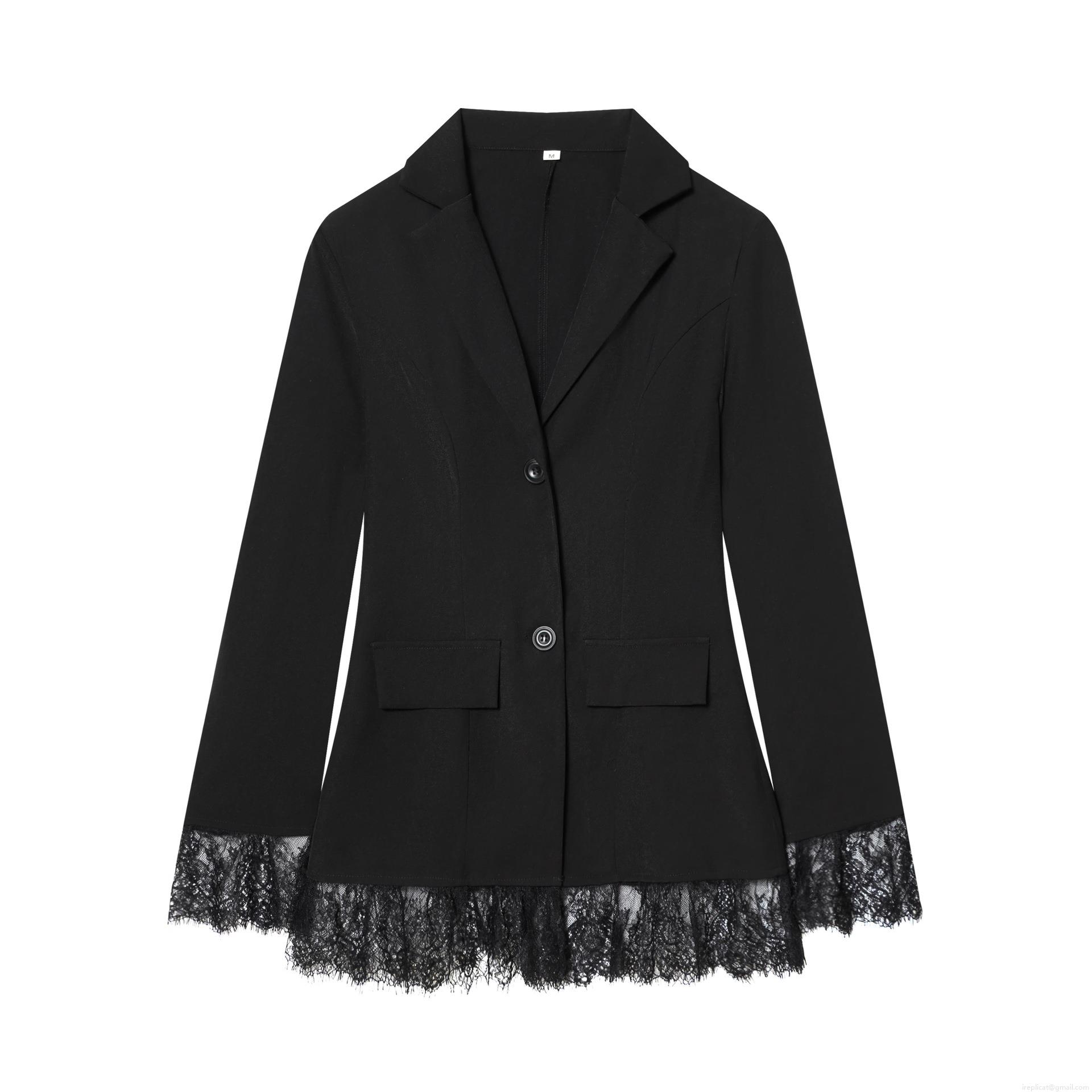 • Women's Elegant Slim Fit Polyester Blazer Jacket With Exquisite Lace Patchwork Hem Cuffs Single Breasted Suit Collar Long Sleeve Outerwear For Office