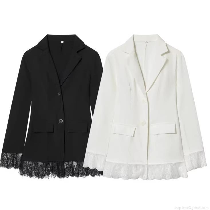 Solid Color, Lace Patchwork, Single-breasted, Notch Collar