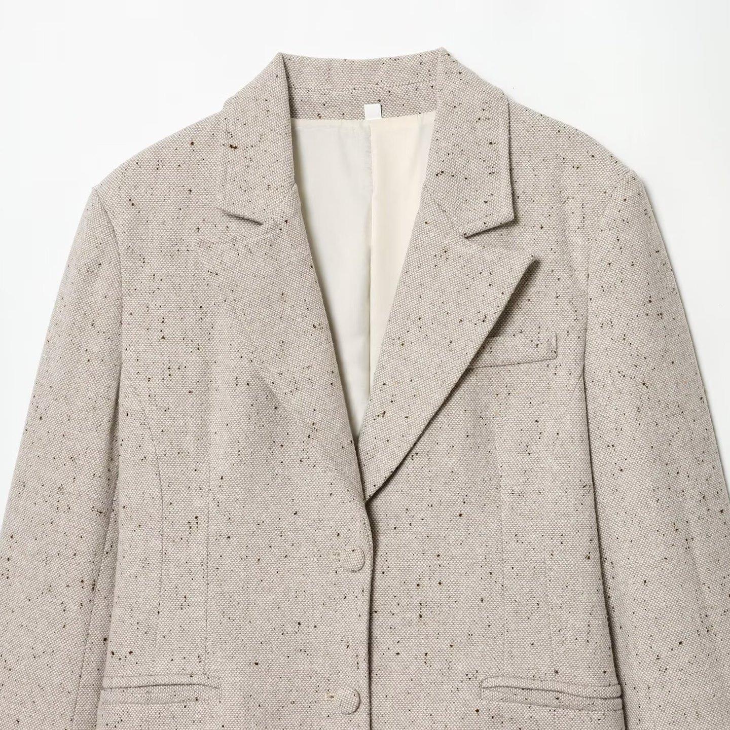 • Women's Elegant Slim Fit Tweed Blazer Jacket Notch Lapel Single Breasted Speckled Outerwear For Office Lady Commuting Casual Winter
