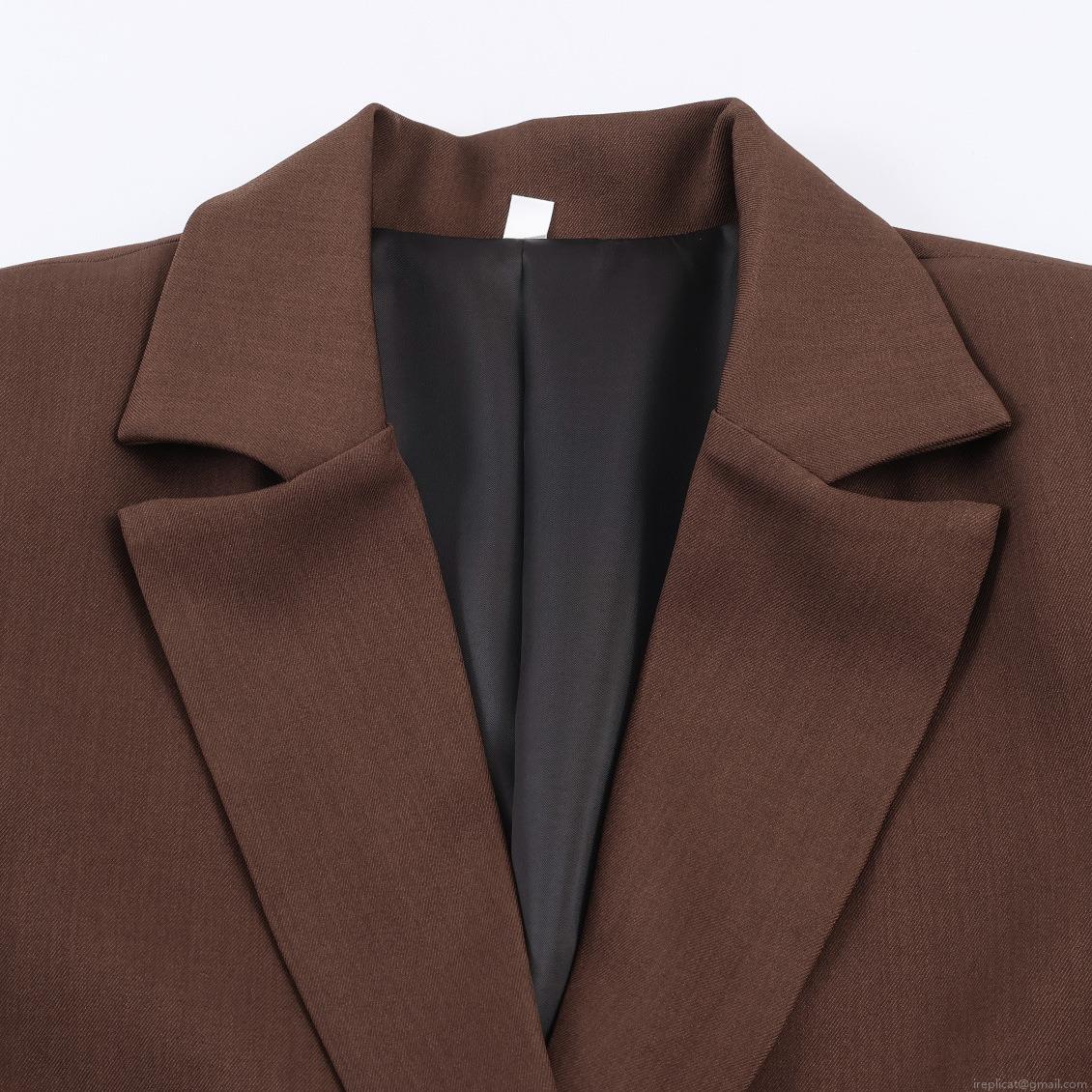 • Women's Elegant Solid Brown Blazer Notched Lapel Double Breasted Loose Fit Suit Jacket With Flap Pockets Black Lining For Office Business Casual Work