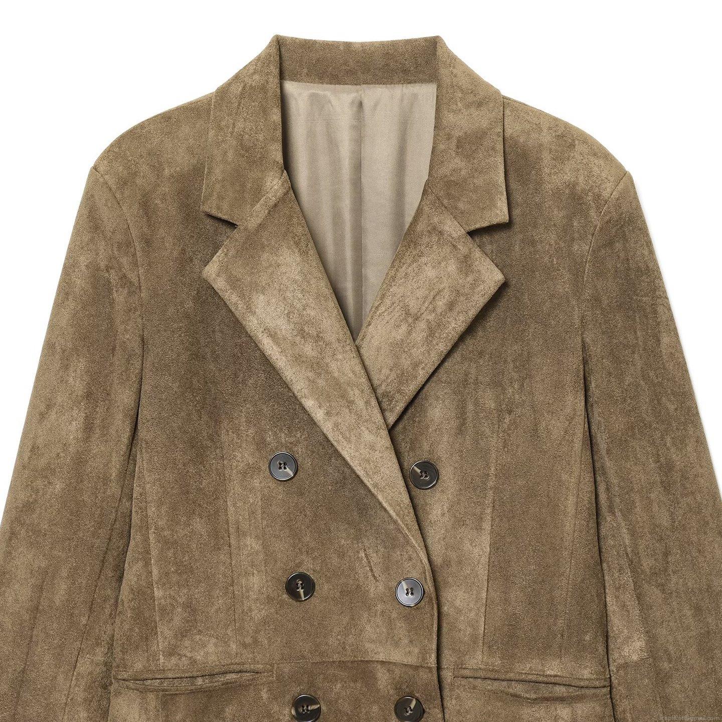 • Women's Elegant Suede Blazer Jacket Fashion Solid Color Double Breasted Office Suit Coat With Pockets For Autumn Winter Casual Commuting
