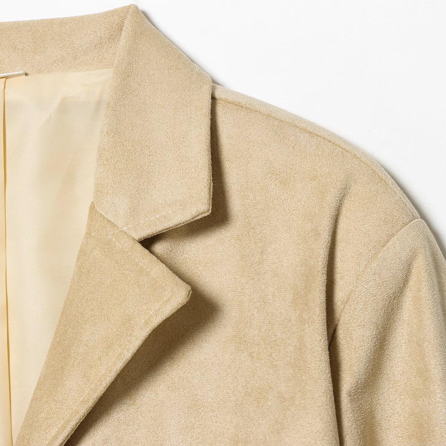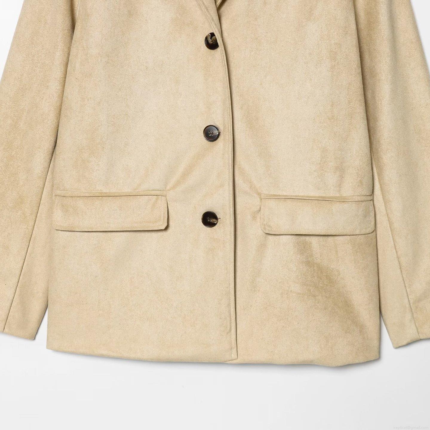 • Women's Elegant Suede Texture Blazer Jacket Single Breasted Three Buttons Suit Jacket With Flap Pockets Solid Color Office Commuter Outwear Coat For Ladies