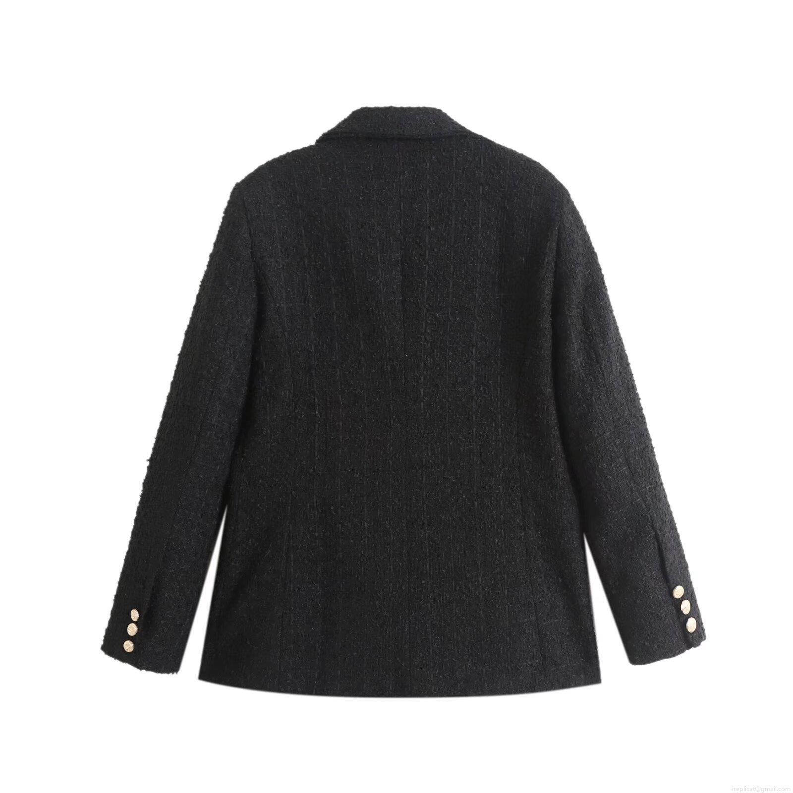 Women's Elegant Tweed Blazer Jacket Double Breasted Gold Buttons Casual Commute Chic Office Lady Outerwear High Quality Fall Winter Coat