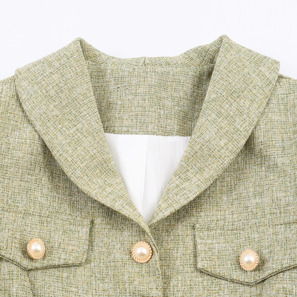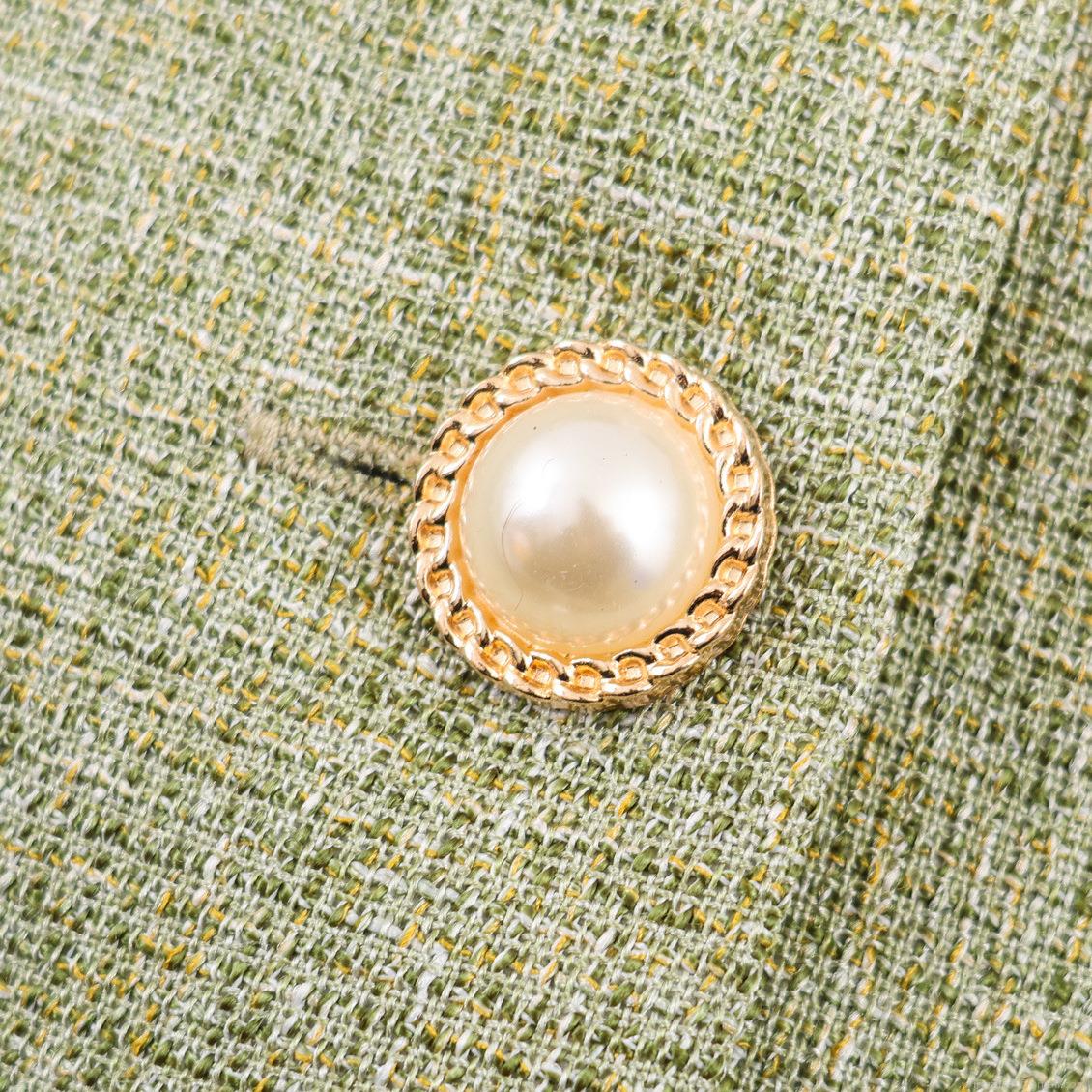 • Women's Elegant Tweed Blazer Jacket With Pearl Buttons And Flap Pockets Single Breasted Long Sleeve Outerwear For Office Commute Ladies British Style
