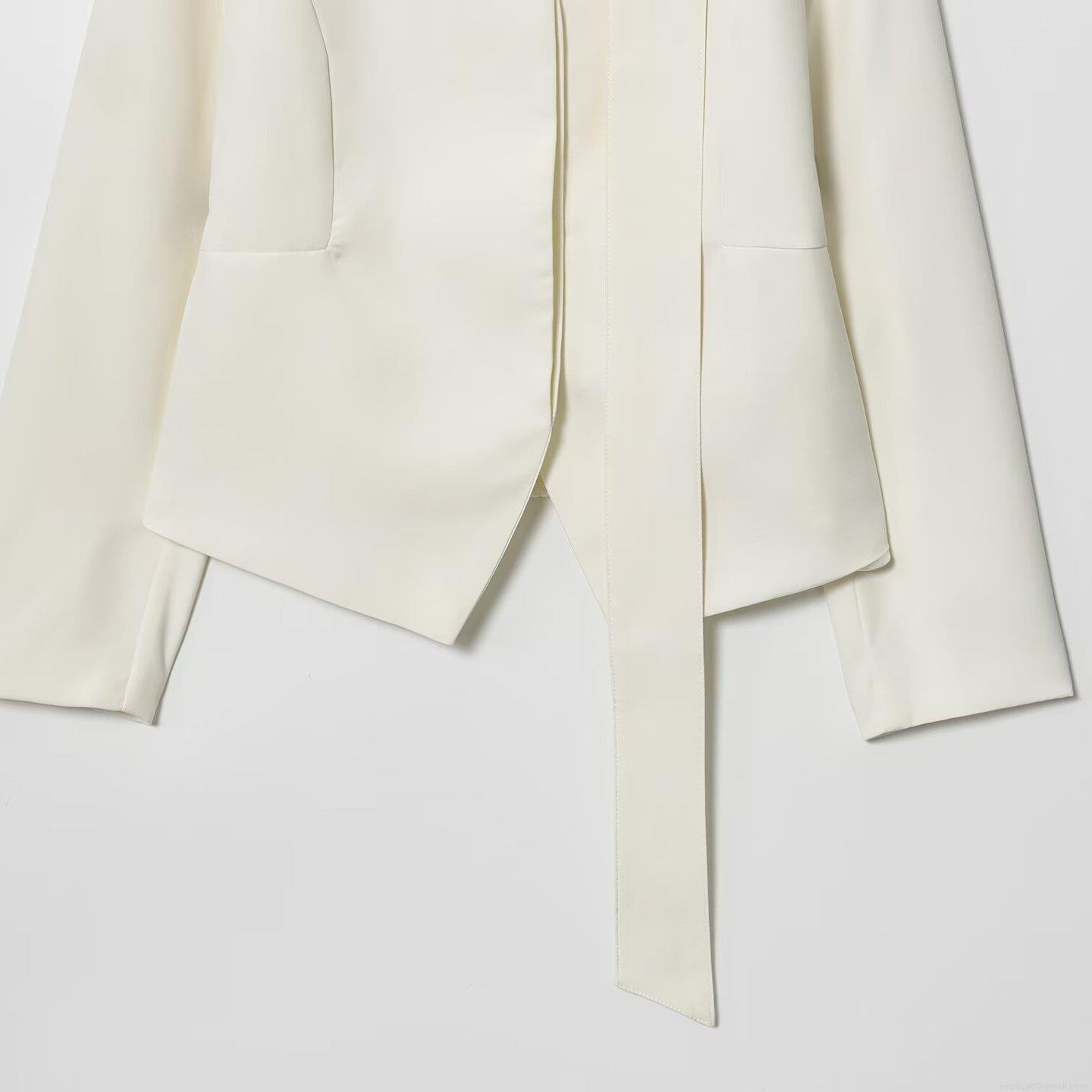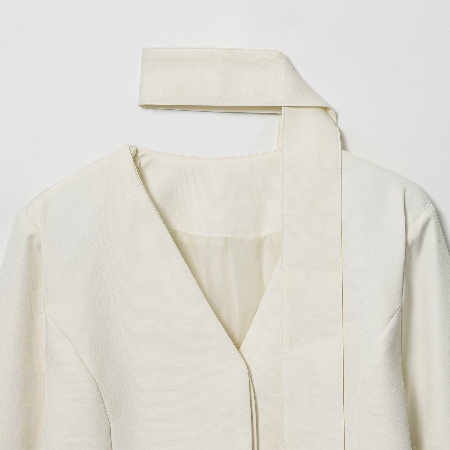 Women's Elegant V Neck Slim Fit Blazer Jacket With Matching Scarf Tie Polyester Spandex Long Sleeve Solid Color Professional Commute Suit Jacket