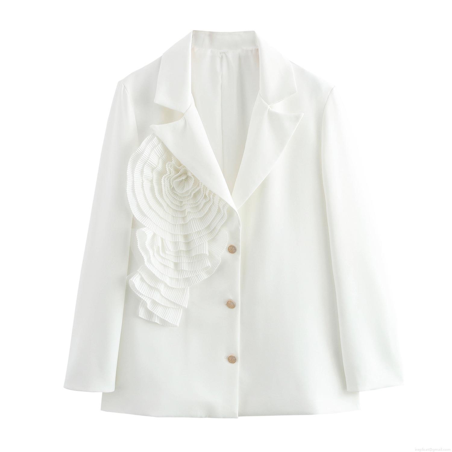 • Women's Elegant White Blazer Jacket With 3D Floral Decoration Notched Lapel Slim Fit Long Sleeve Single Breasted Suit Coat For Office Lady Formal Work Wear Professional Sophisticated Stylish Outerwear