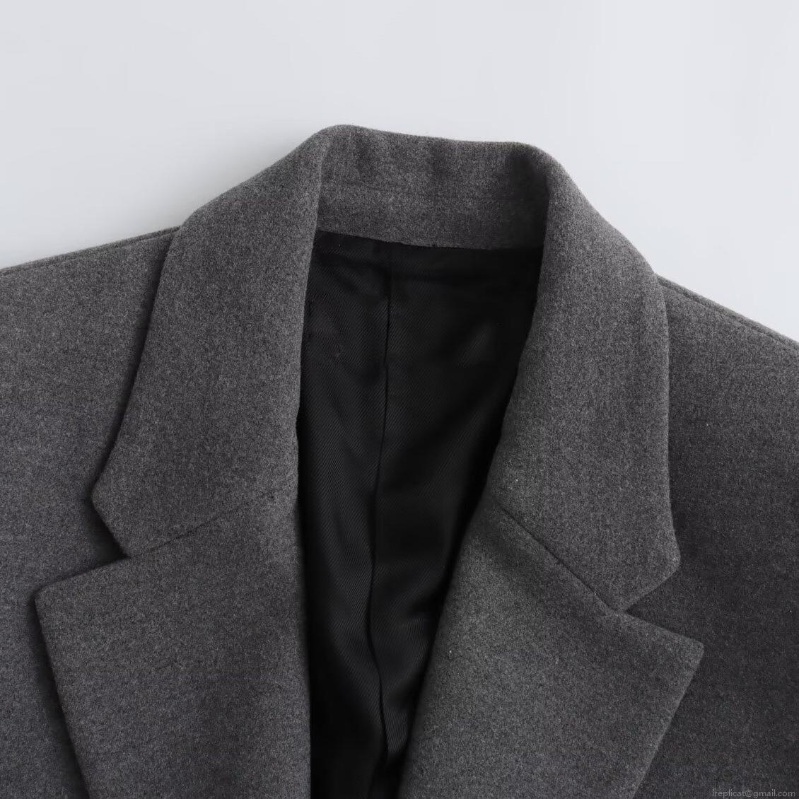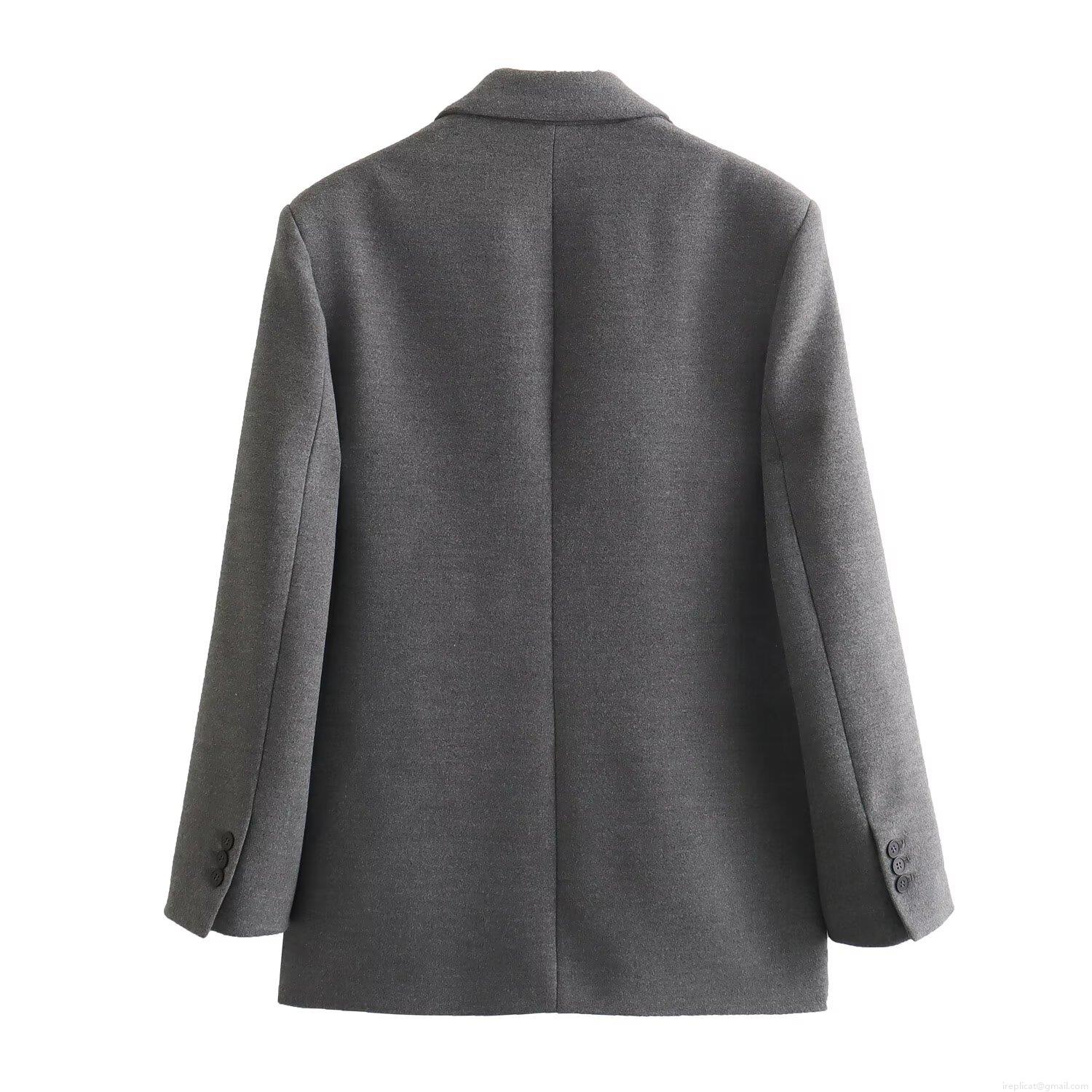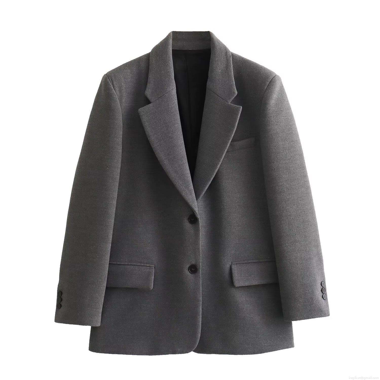 • Women's Elegant Woolen Suit Jacket With Shoulder Pads Loose Oversized Solid Color Winter Blazer For Office Commute Formal Outerwear