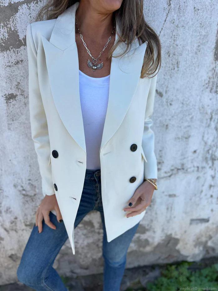 • Women's Fashion Casual Blazer Notch Lapel Double Breasted Jacket Office Wear Long Sleeve Polyester Spandex Outerwear Coat Plus Size