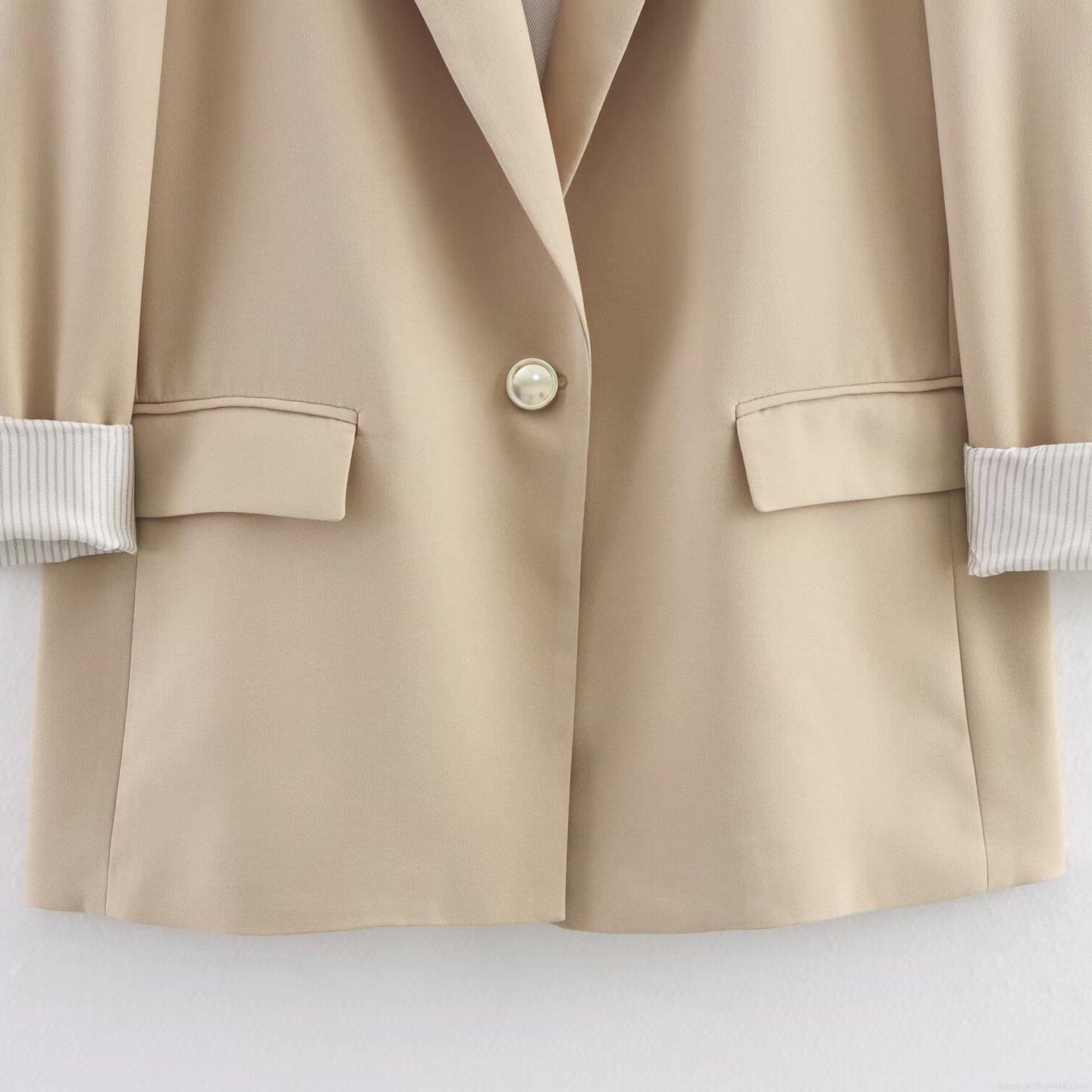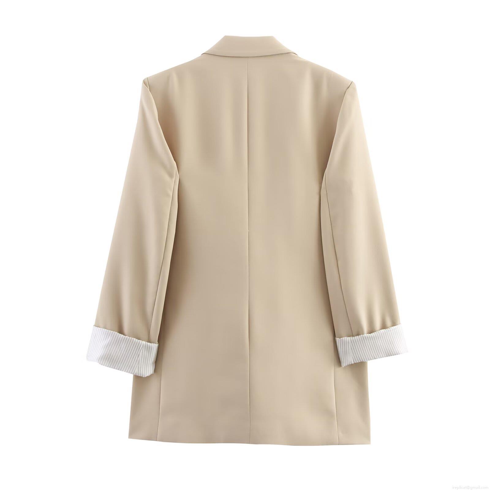 • Women's Fashion Casual Blazer Notched Lapel One Button Suit Jacket Office Work Wear With Striped Cuffs Elegant Loose Fit Outerwear Polyester Spandex Blend Solid Color Blazer
