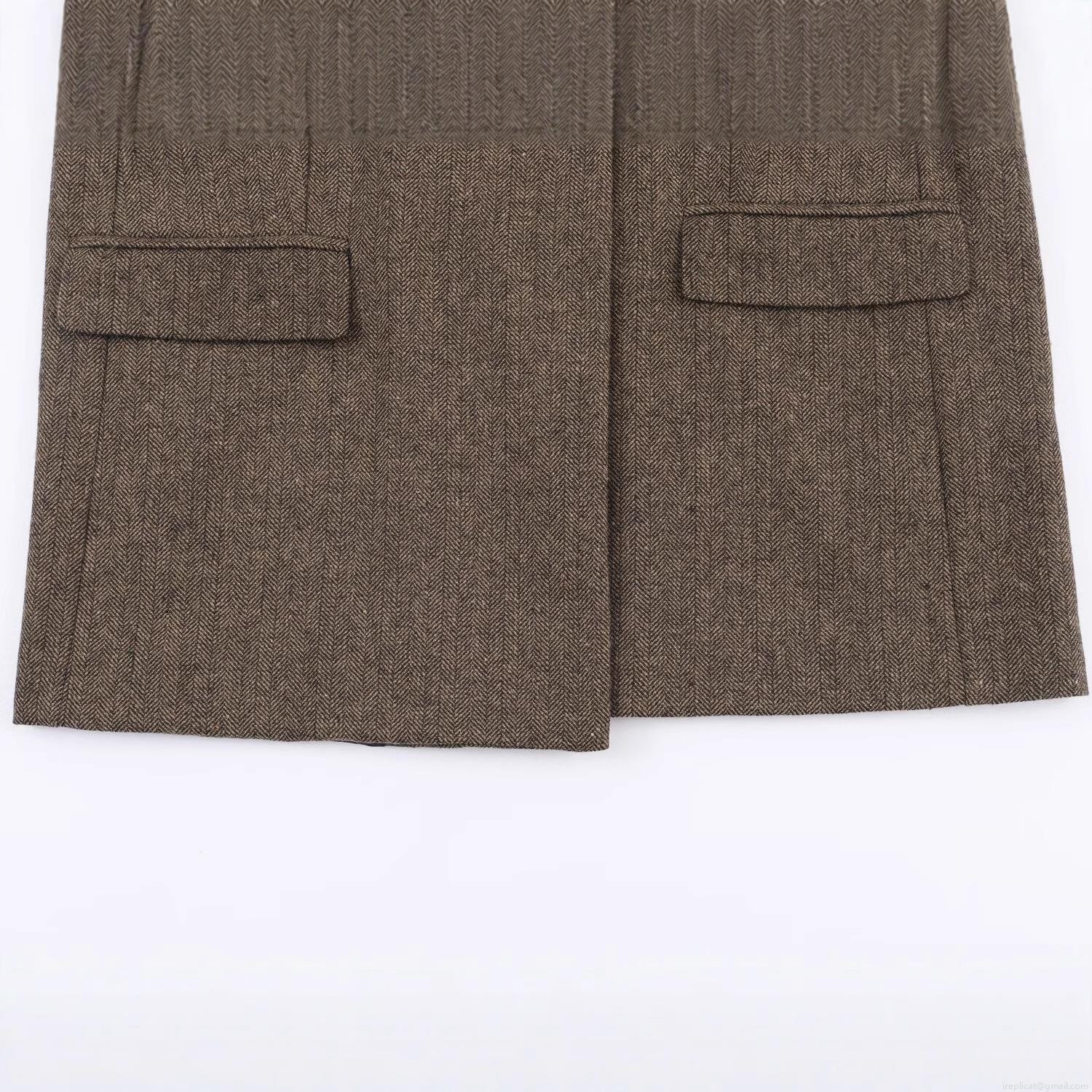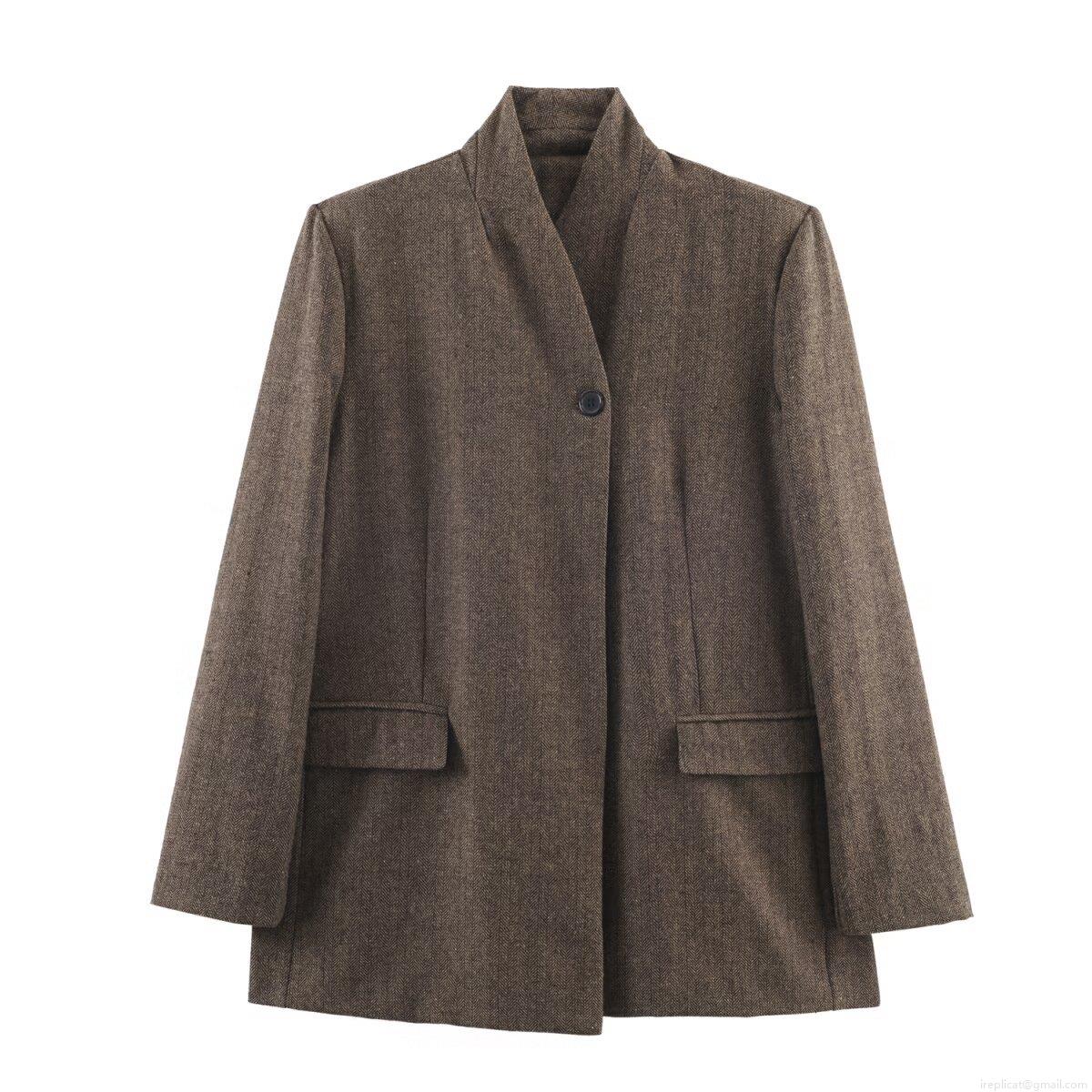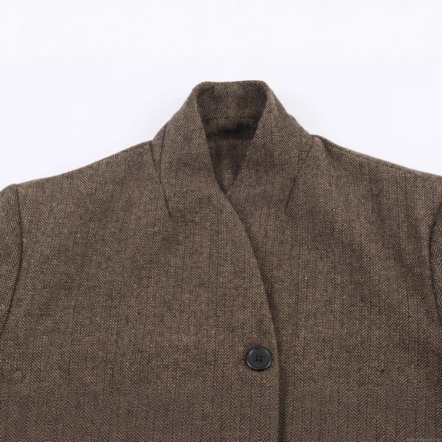 • Women's Fashion Casual Herringbone Twill Blazer Jacket Single Breasted Notched Lapel Polyester Blend Tweed Look Coat with Flap Pockets for Office Work Streetwear Brown
