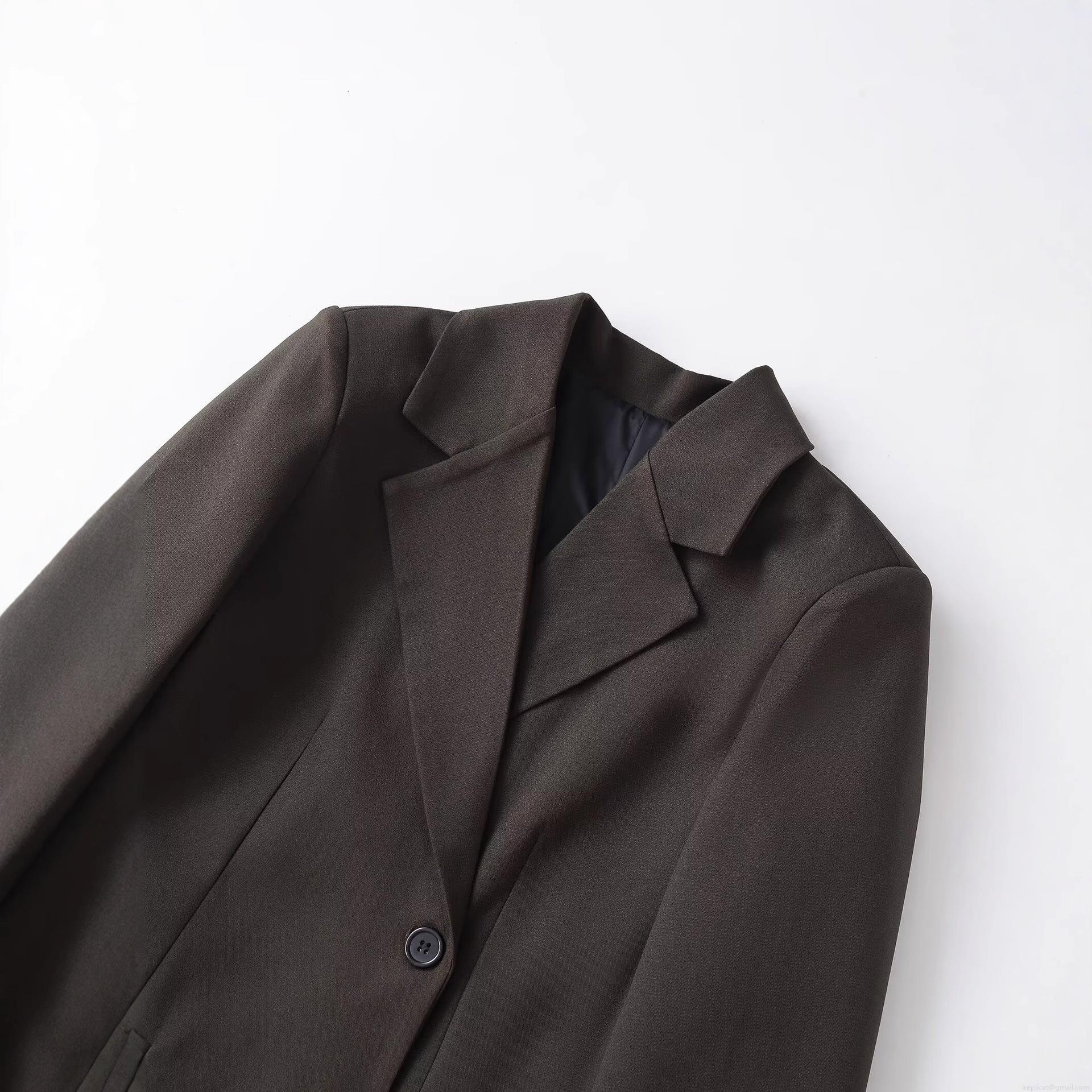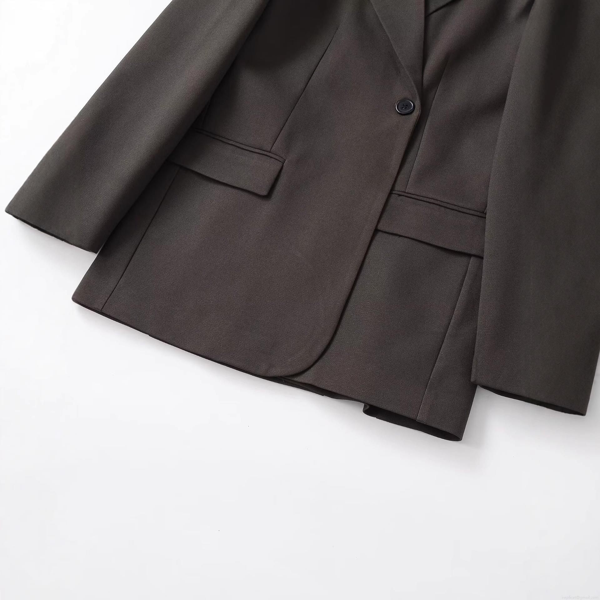 • Women's Fashion Casual Solid Color Polyester Blazer Notched Lapel Single Button Office Lady Long Sleeve Jacket Outerwear For Women