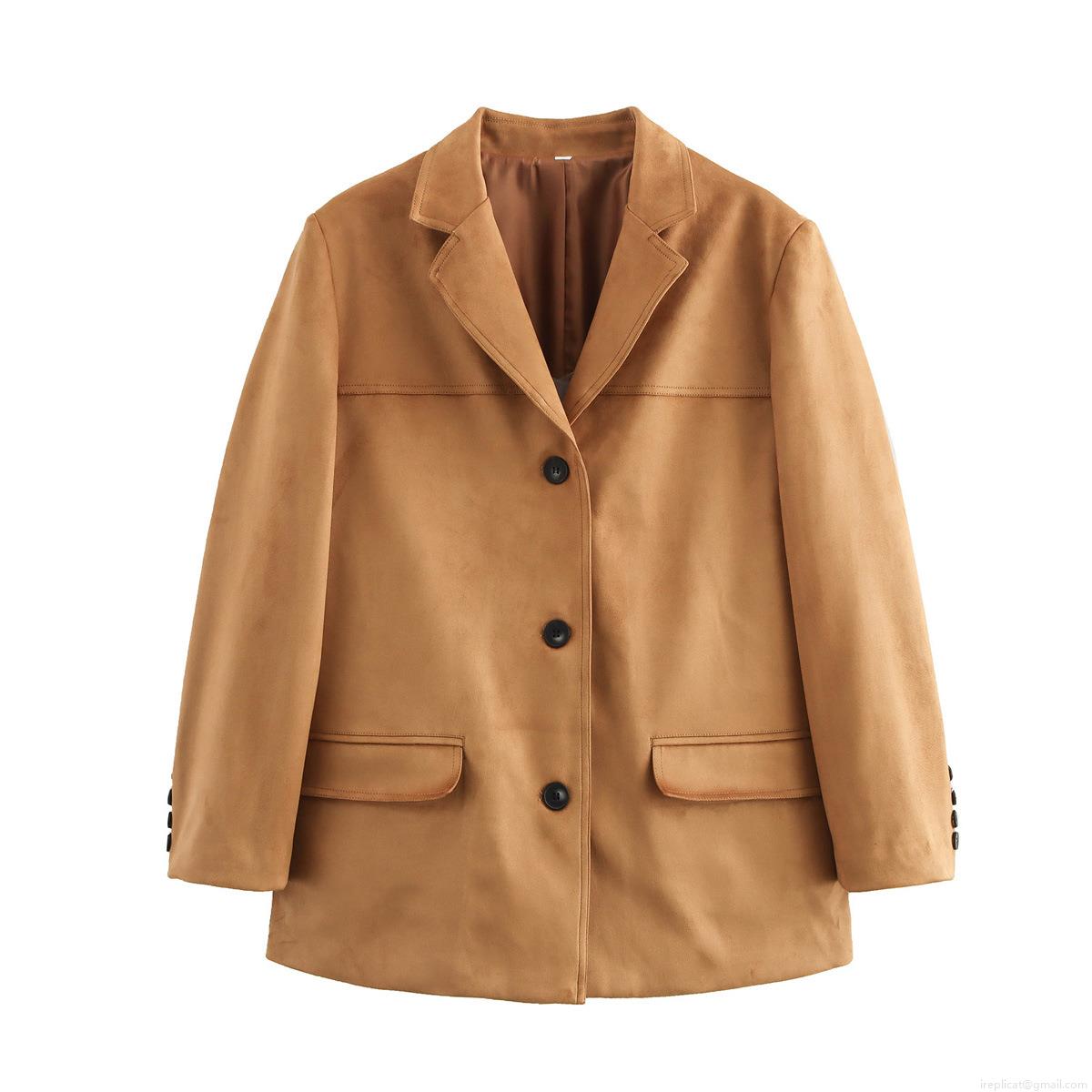 Women's Fashion Faux Suede Blazer Jacket Solid Color Lapel Long Sleeve Single Breasted Polyester Outerwear Coat For Office Daily Lady