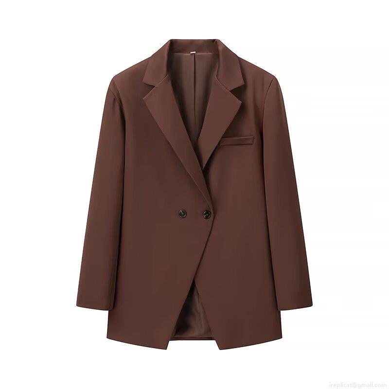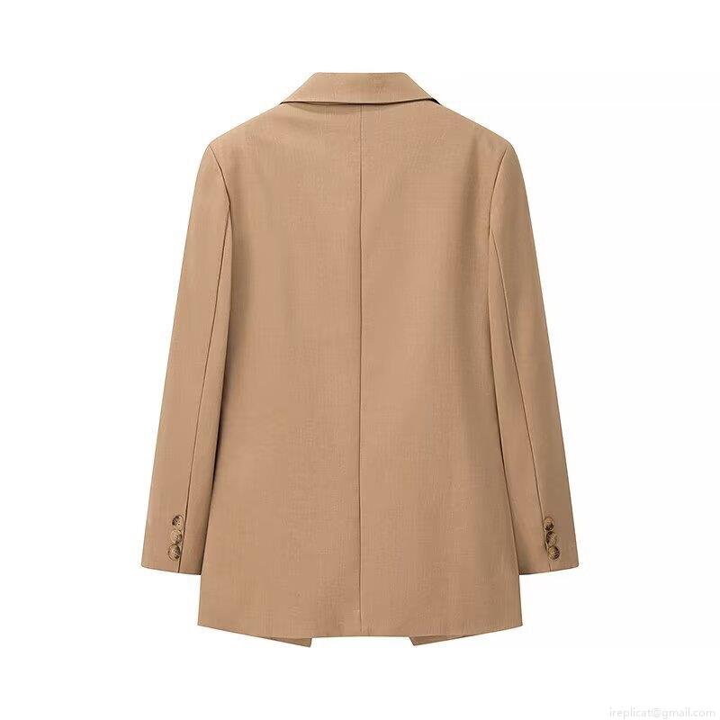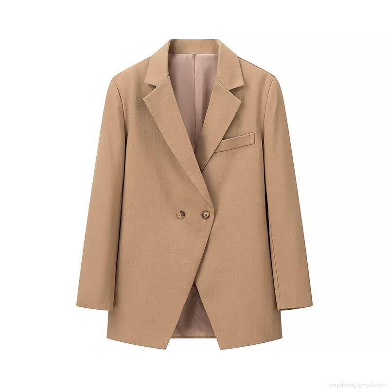 • Women's Fashion Loose Blazer Jacket Casual Solid Color Double Breasted Polyester Mid-Length Suit Coat For Office Streetwear Spring Autumn