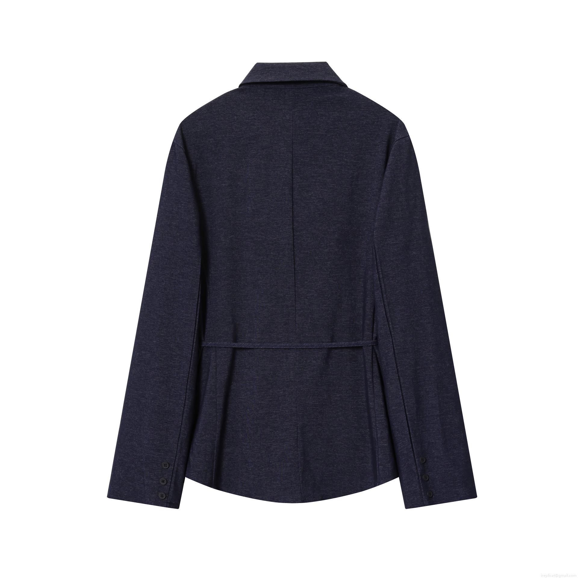 • Women's Fashion Navy Blue Polyester Blazer Jacket With Belt Single Breasted Turn Down Collar Mid Length Outerwear For Office Lady Casual Elegant Coat
