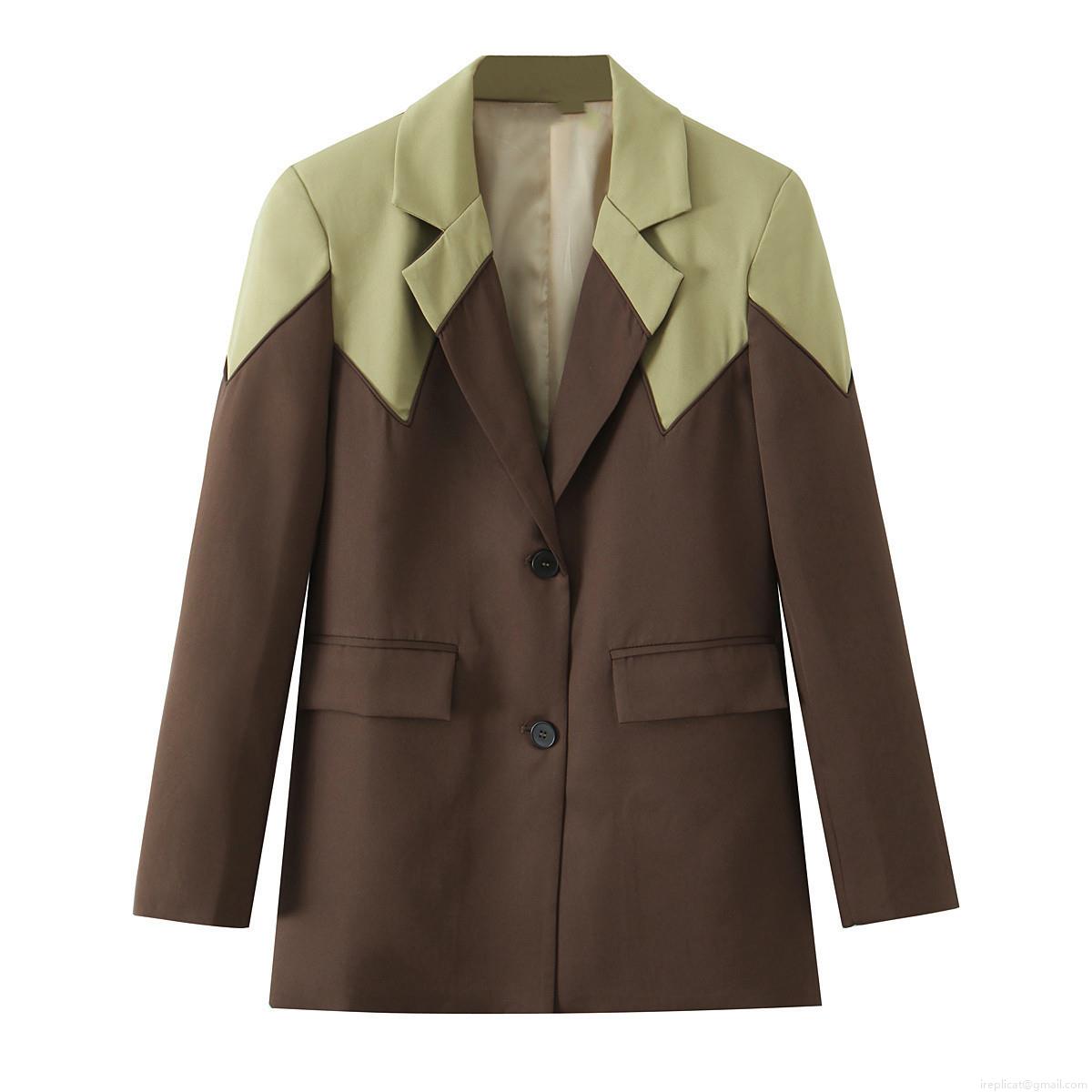 • Women's Fashion Patchwork Color Block Blazer Notch Lapel Long Sleeve Single Breasted Jacket For Office Business Casual Commute Elegant Outerwear Coat