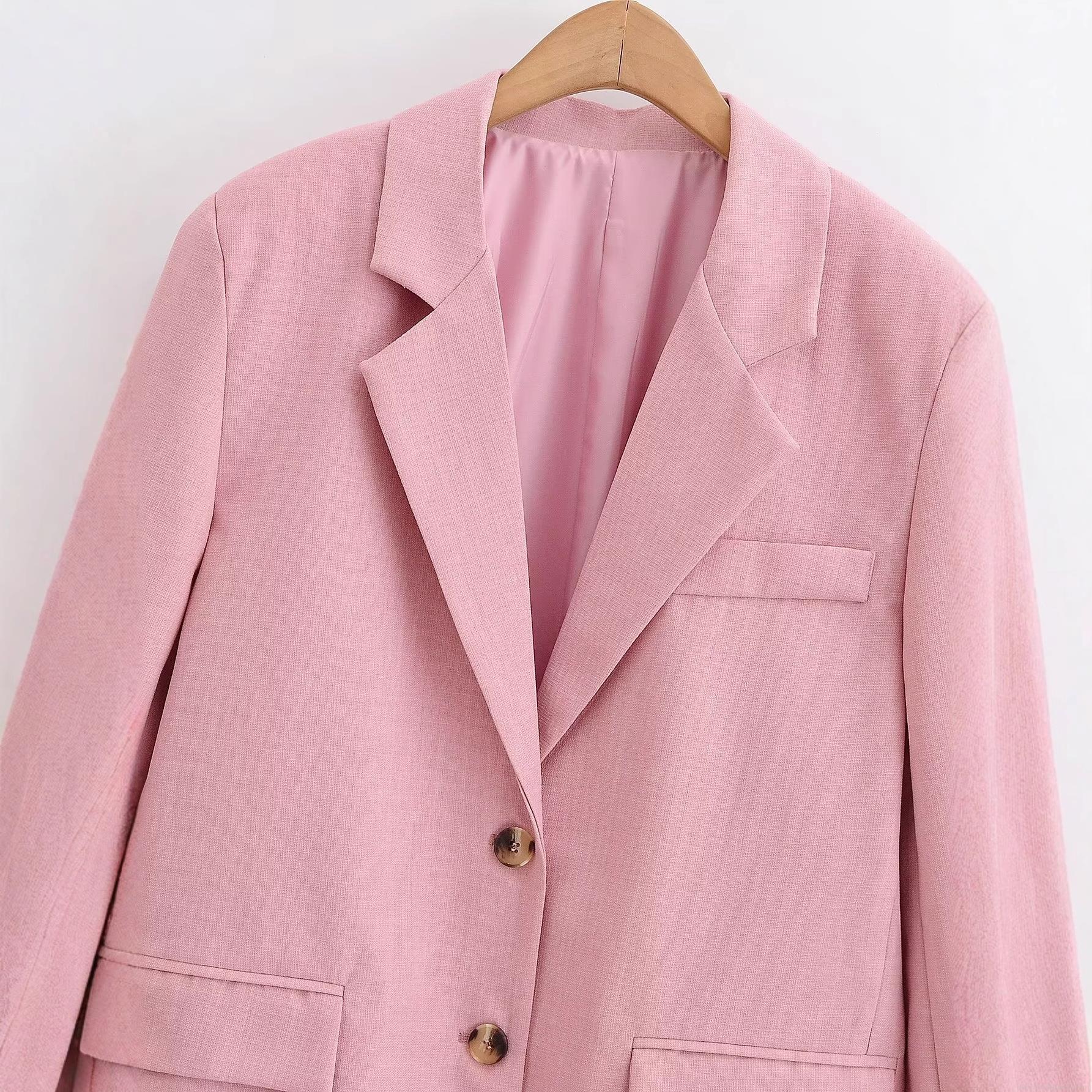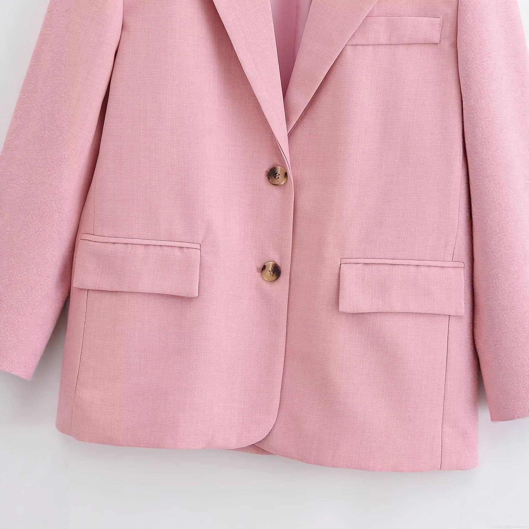 • Women's Fashion Pink Blazer Polyester Notched Lapel Single Breasted Suit Jacket Casual Sweet Cool Style Outerwear with Flap Pockets for Ladies Party Office