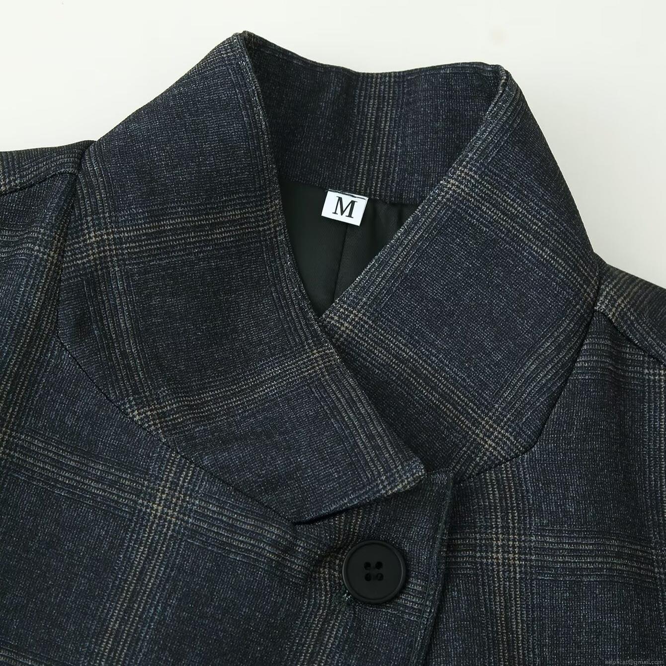 • Women's Fashion Plaid Stand Collar Blazer Jacket Elegant Loose Fit Long Sleeve Commuter Suit Outerwear For Office Lady