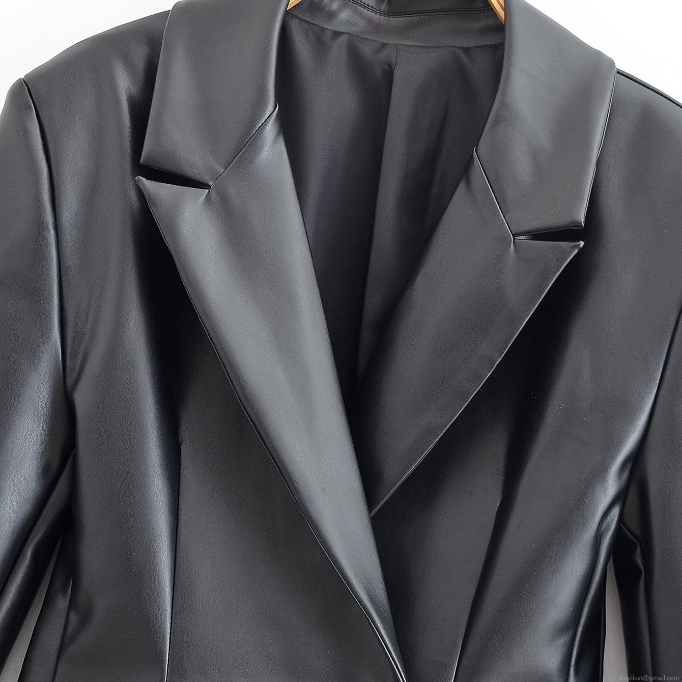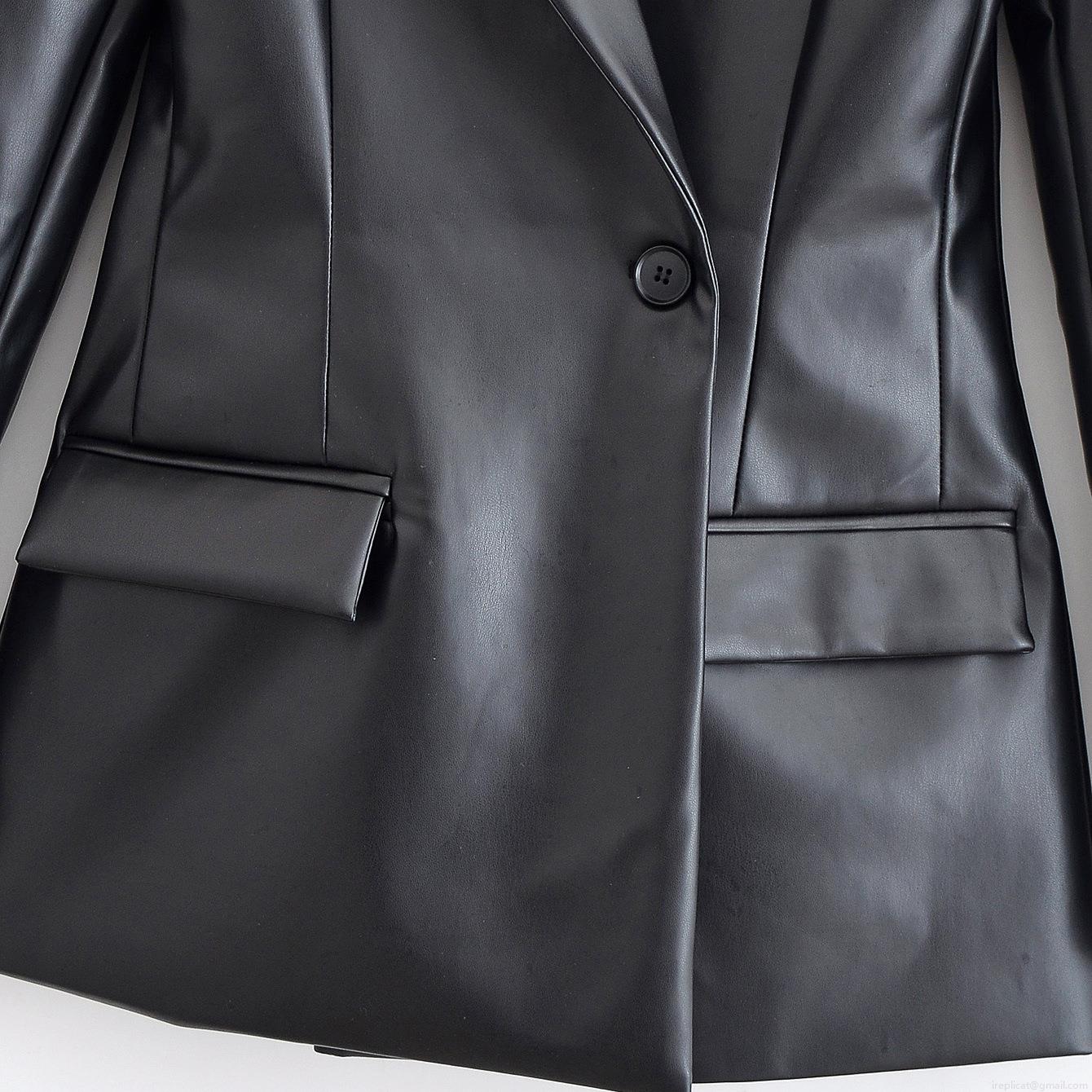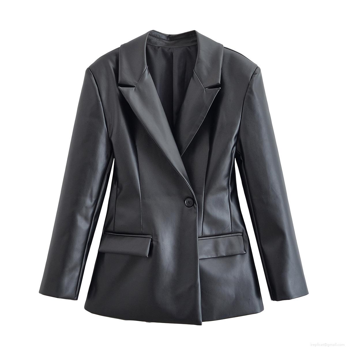 • Women's Fashion PU Leather Blazer Jacket Solid Color Notched Lapel Single Button Short Coat Elegant Office Lady Casual Outerwear For Party Dating