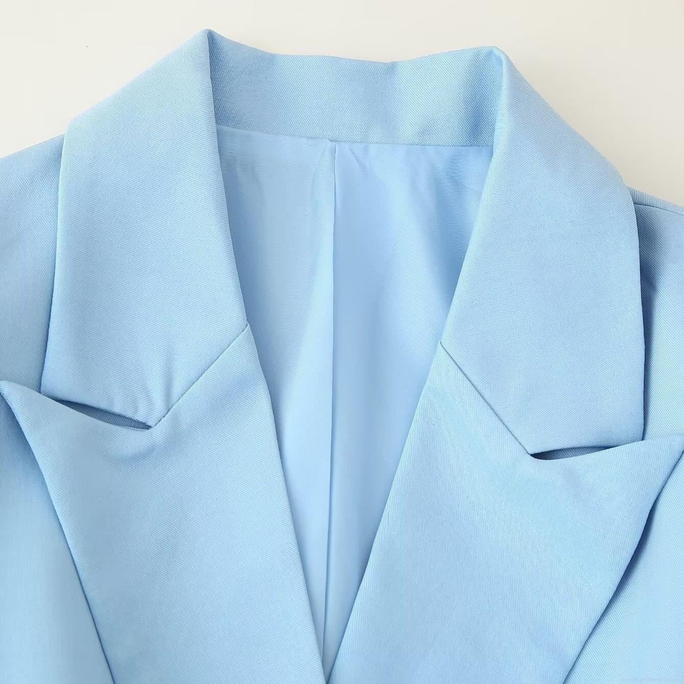 • Women's Fashion Slim Fit Blazer Jacket With Tie Waist Belt Wide Shoulder Pads Solid Color Office Suit Elegant Long Sleeve Commuter Outerwear For Lady