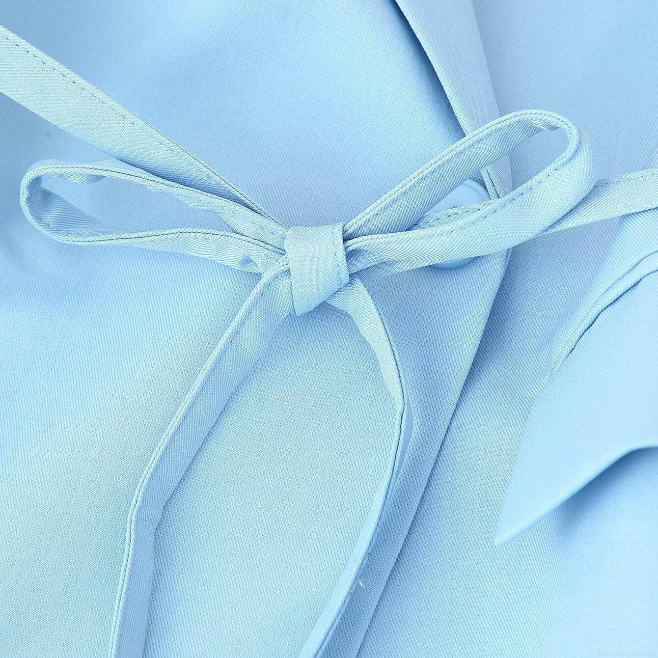 Solid Color, Floral Pattern, Bow Decoration, Lapel, Flap Pocket, Waist Tie, Wide Shoulder Design