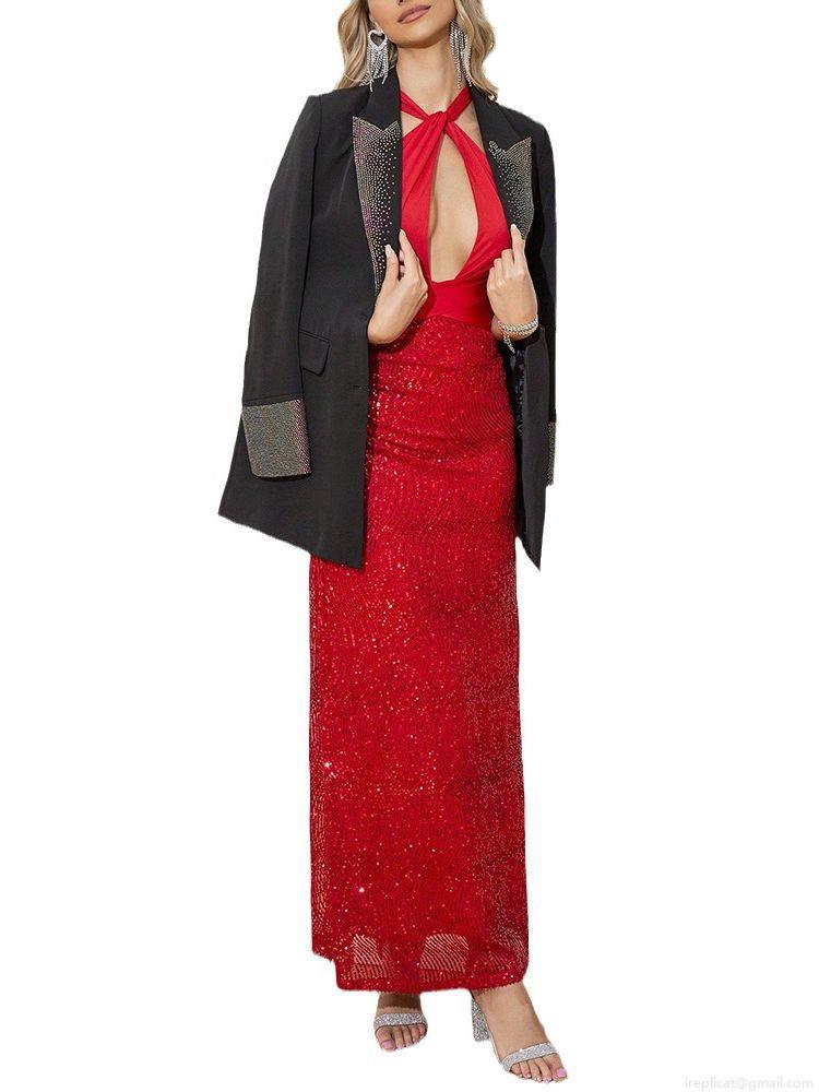 • Women's Fashion Slim Fit Blazer Long Sleeve Rhinestone Sequin Patchwork Jacket Elegant Evening Party Office Lady Suit Coat Black