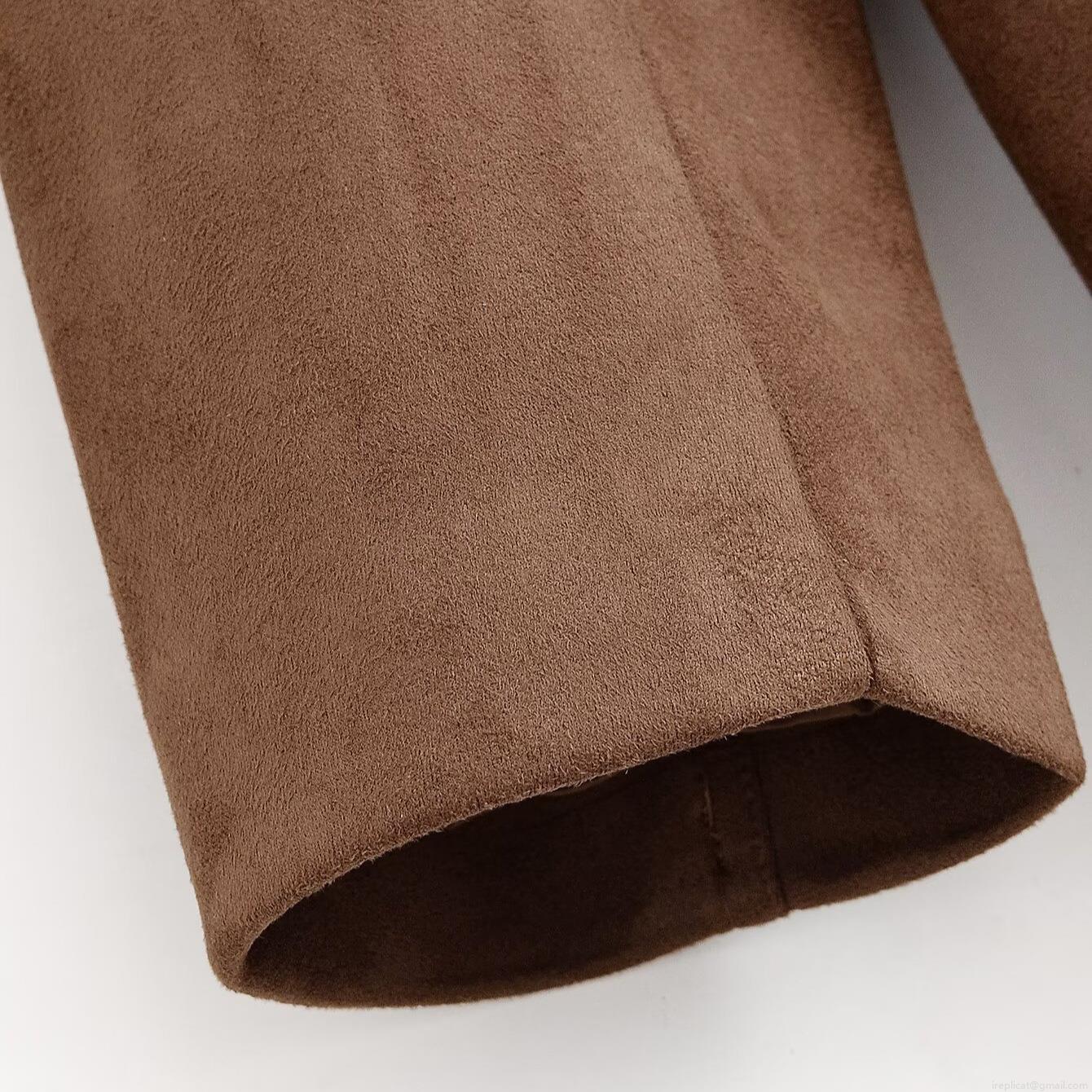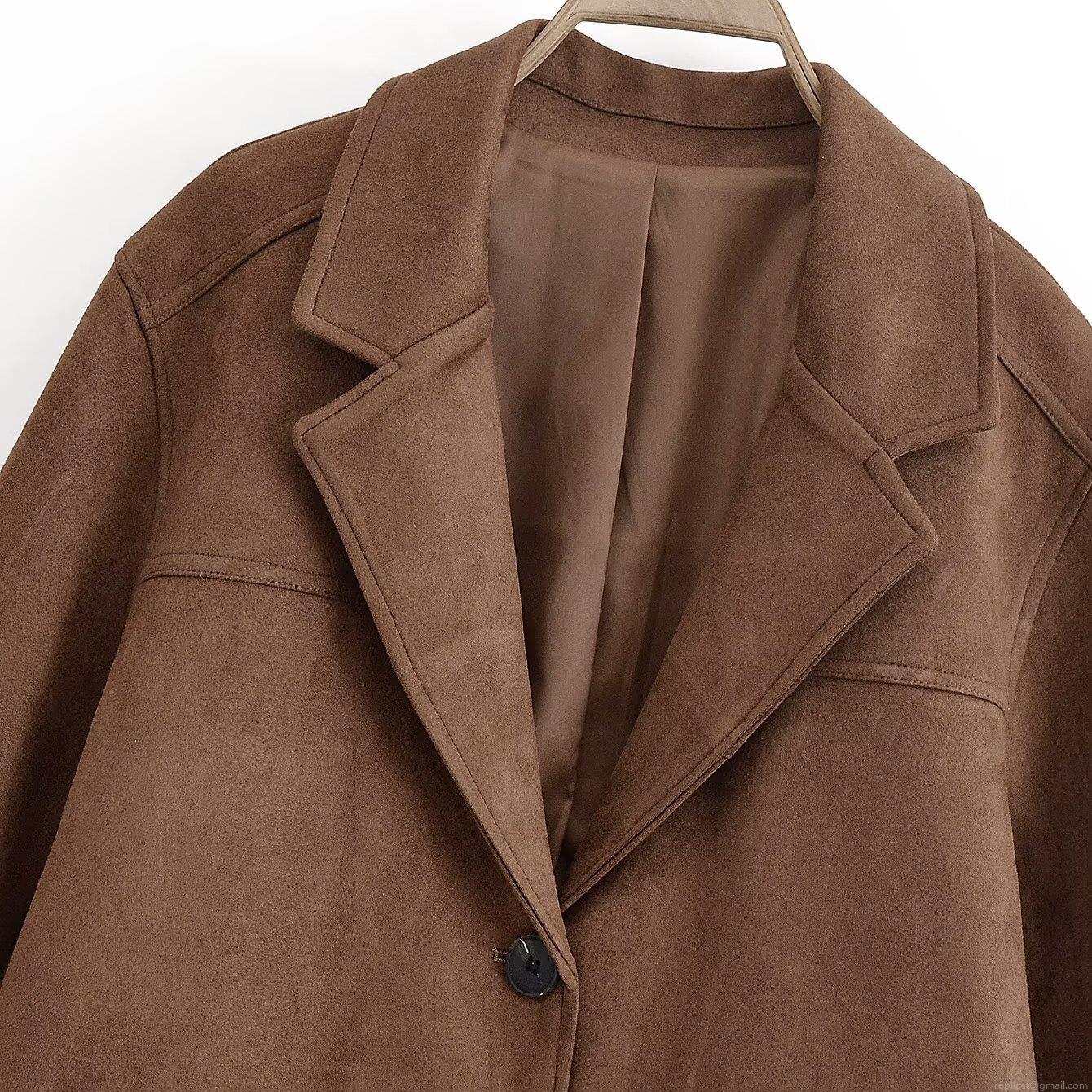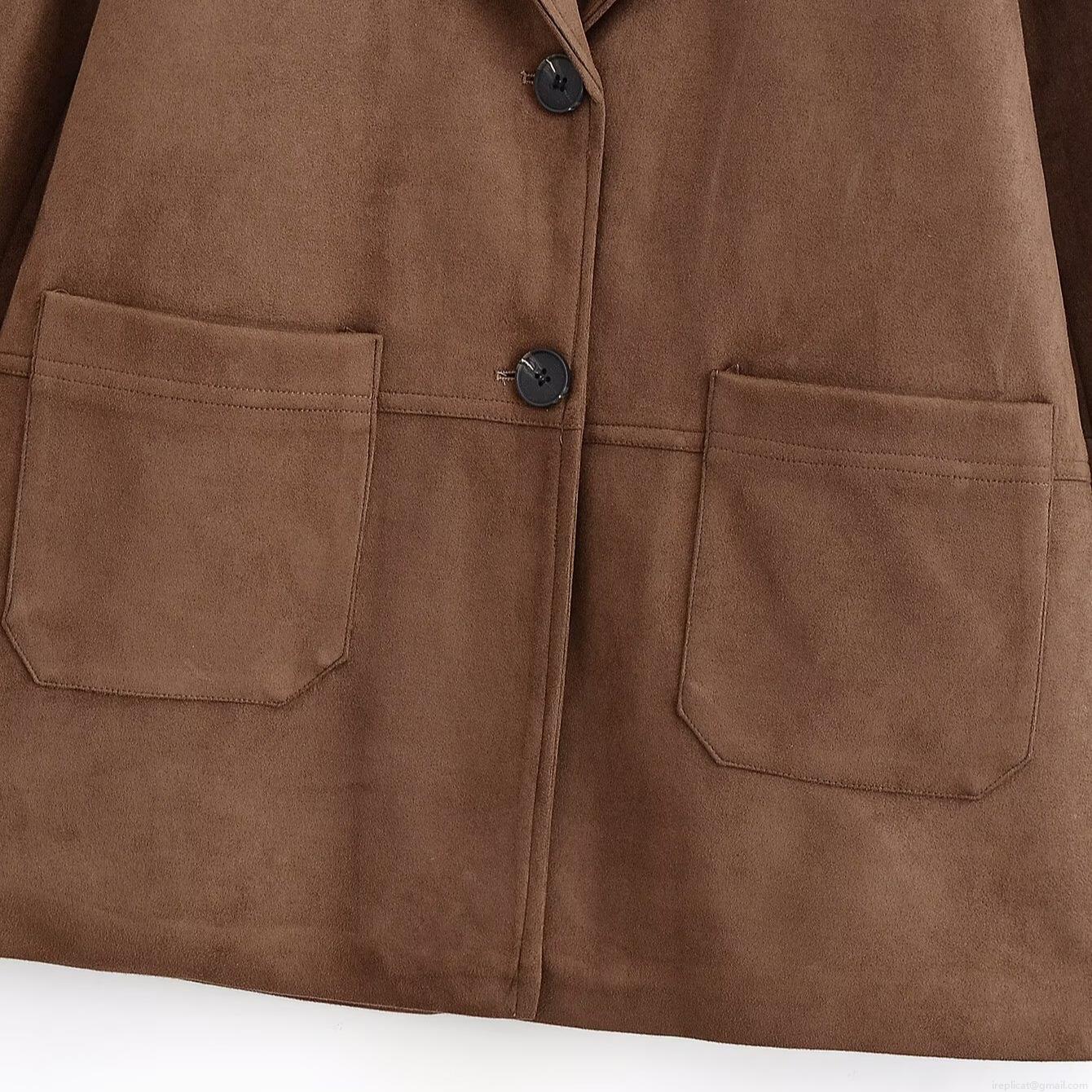 • Women's Fashion Suede Blazer Casual Loose Deep Brown Long Sleeve Jacket For Commuter Office Autumn Winter Solid Color Lapel Outerwear With Double Pockets