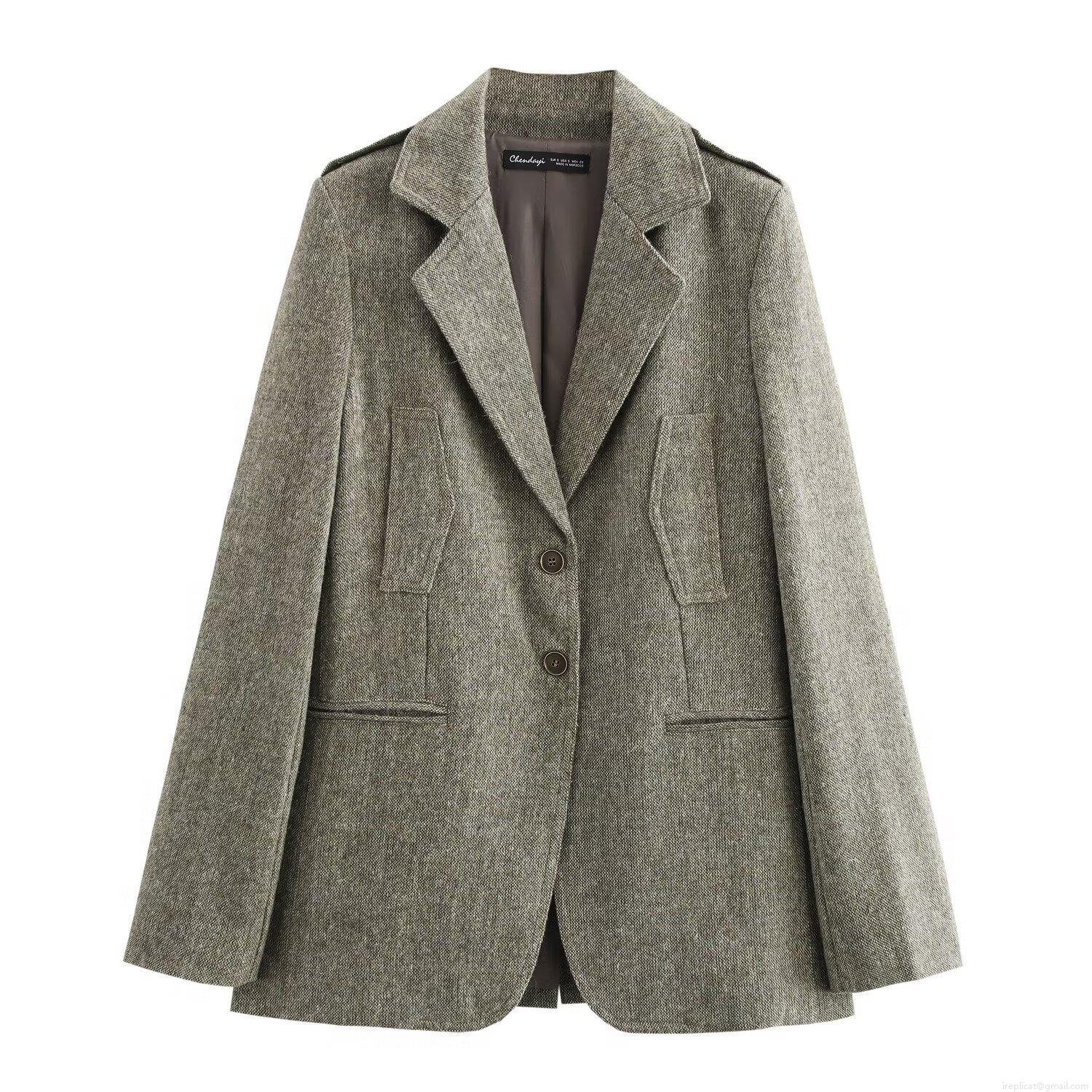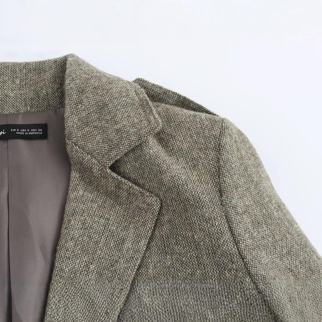 • Women's Fashion Tweed Blazer Jacket Long Sleeve Notch Lapel Suit Coat with Shoulder Straps Mixed Weave Casual Outerwear for Ladies