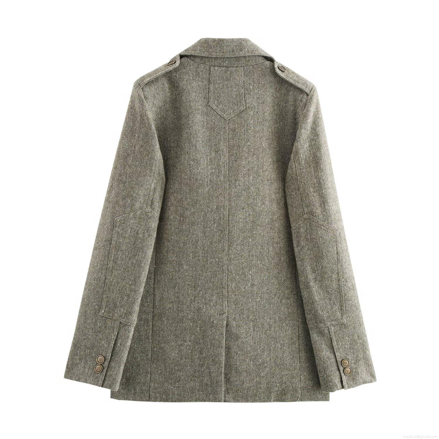 Solid Color, Collage, Buttons, Shoulder Epaulettes, Mottled Texture, Tweed Pattern