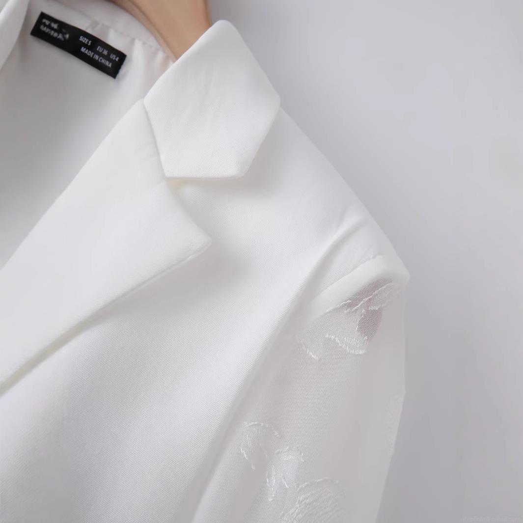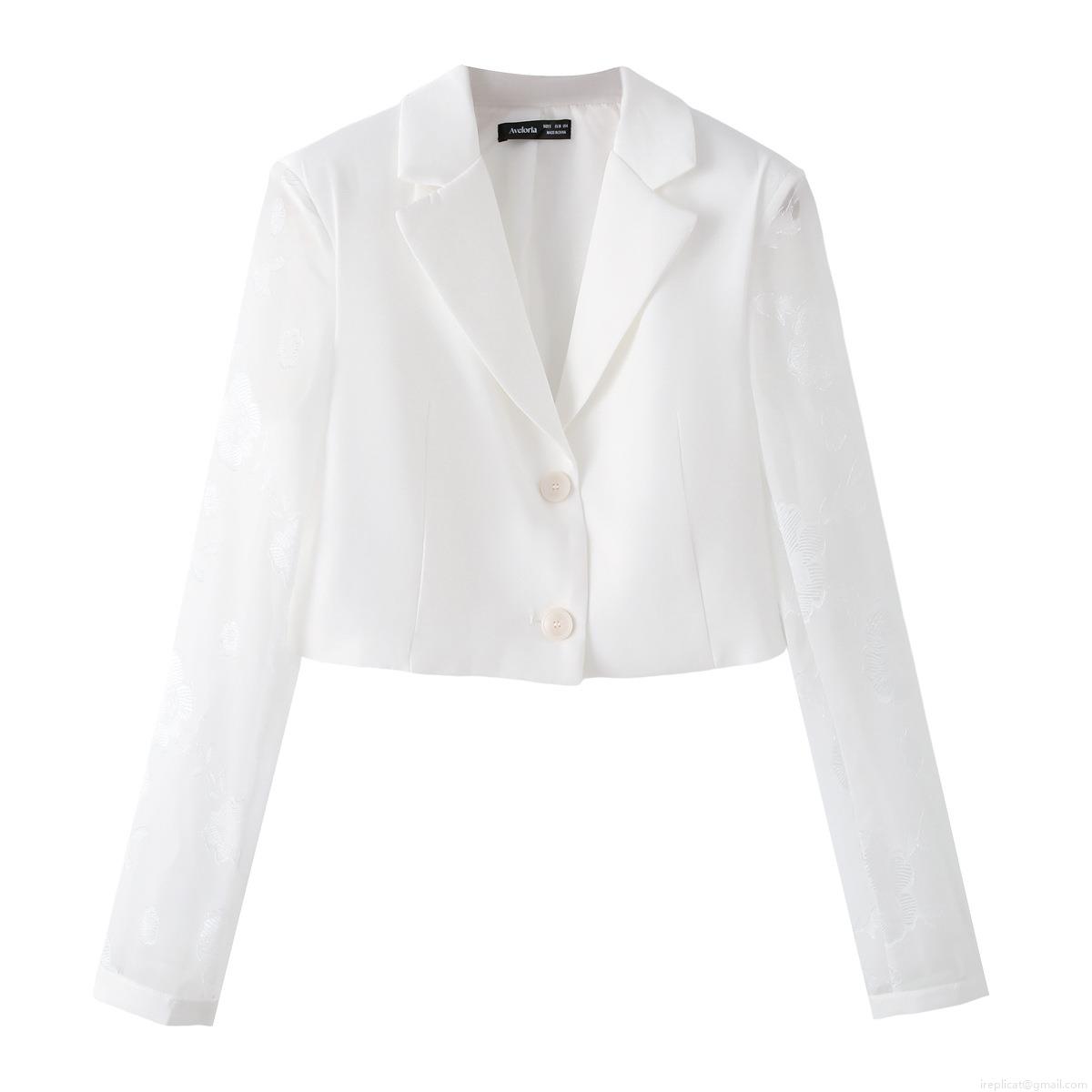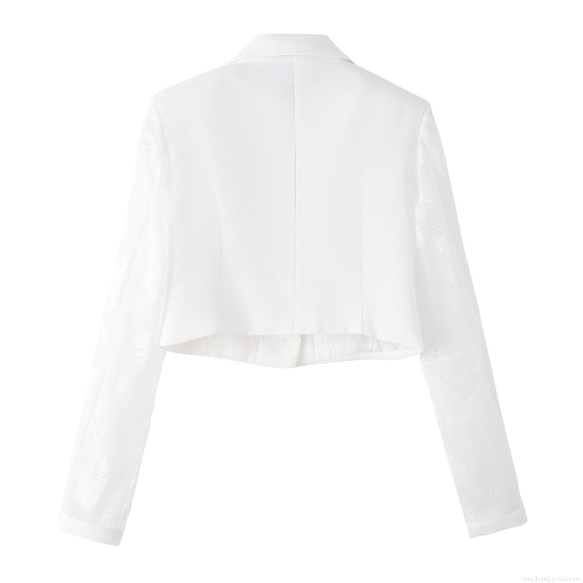 • Women's Fashion White Crop Blazer Jacket With Lace Embroidery Long Sleeve Lapel Single Breasted Short Suit Jacket For Daily Street Style Women