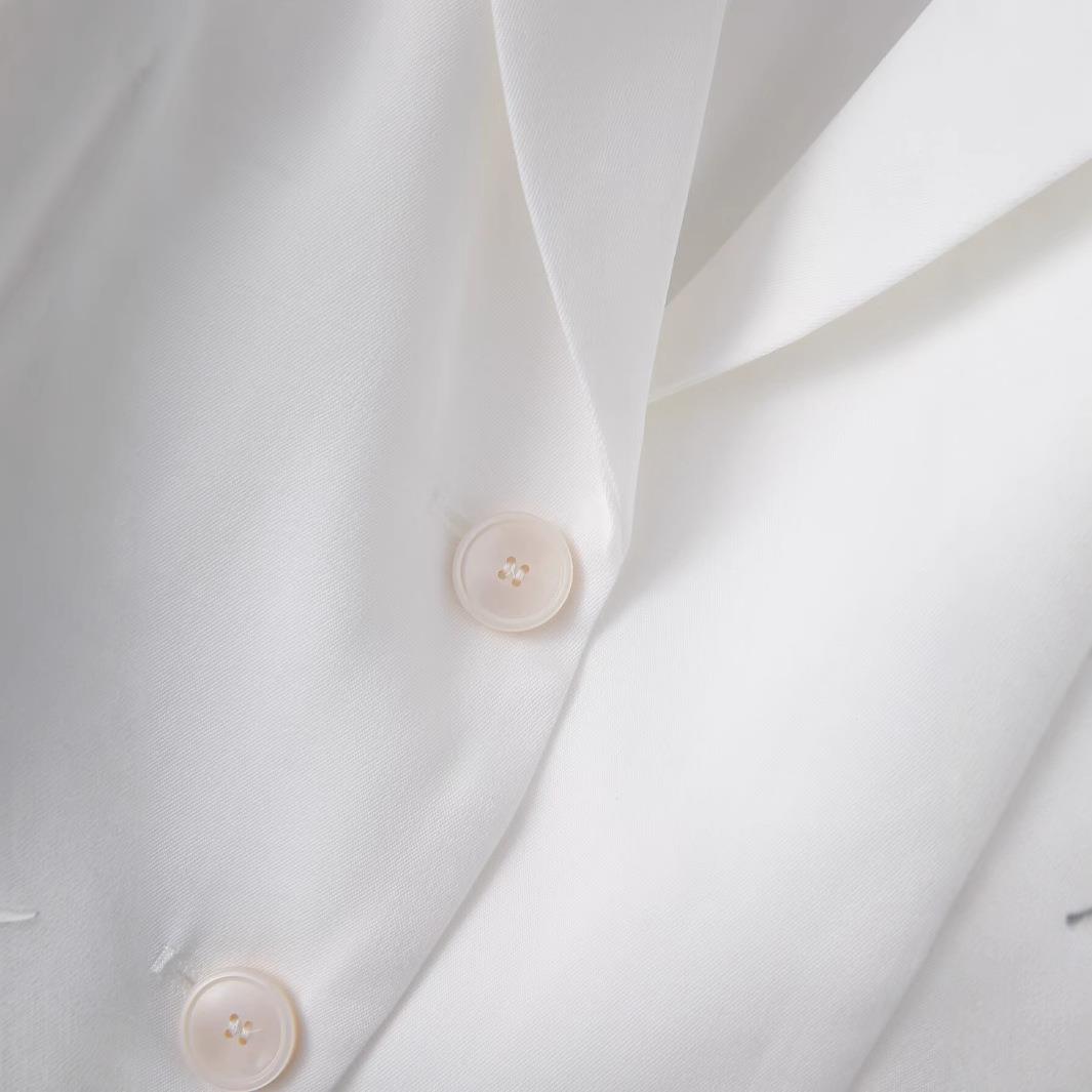 Women's Fashion White Crop Blazer Jacket With Lace Embroidery Long Sleeve Lapel Single Breasted Short Suit Jacket For Daily Street Style Women