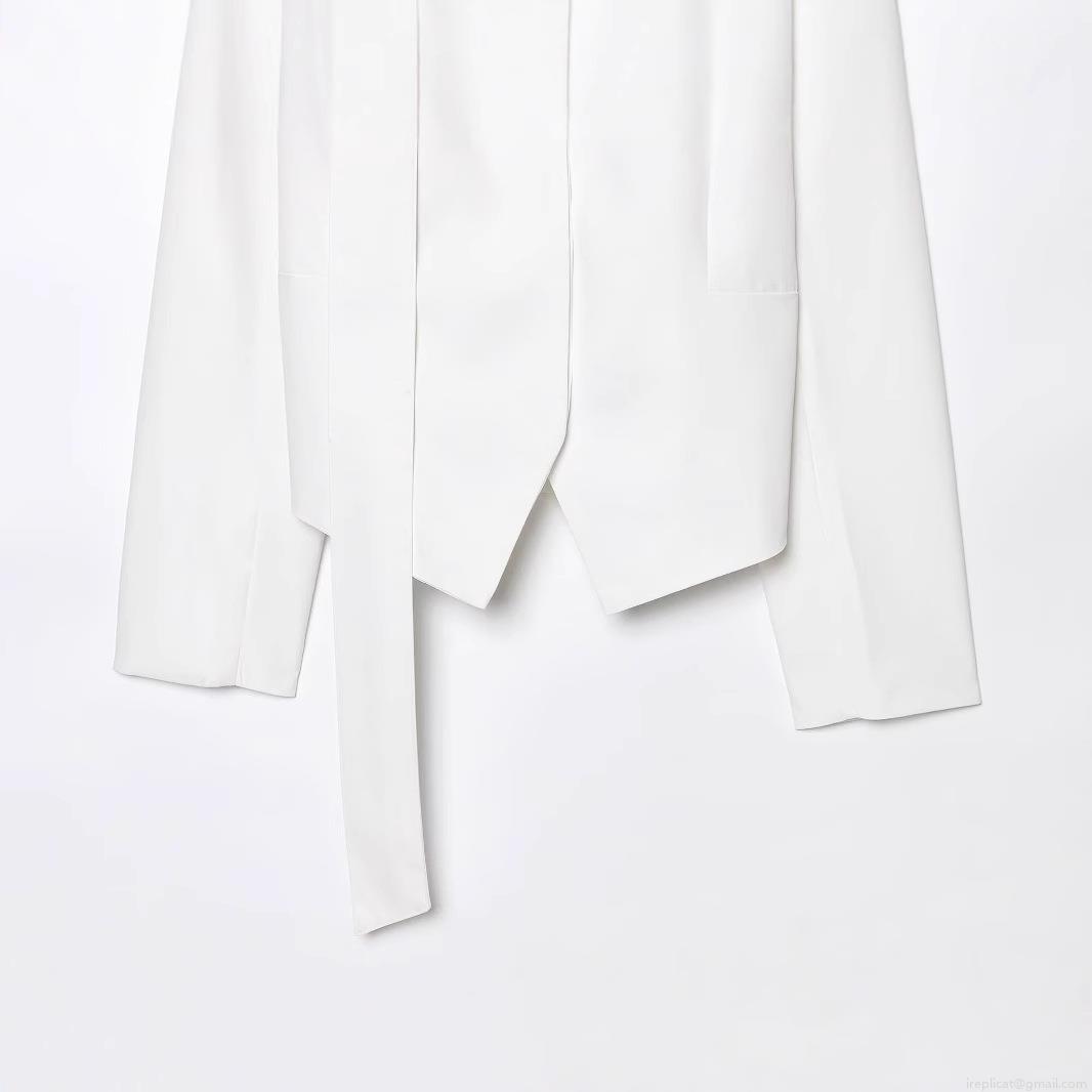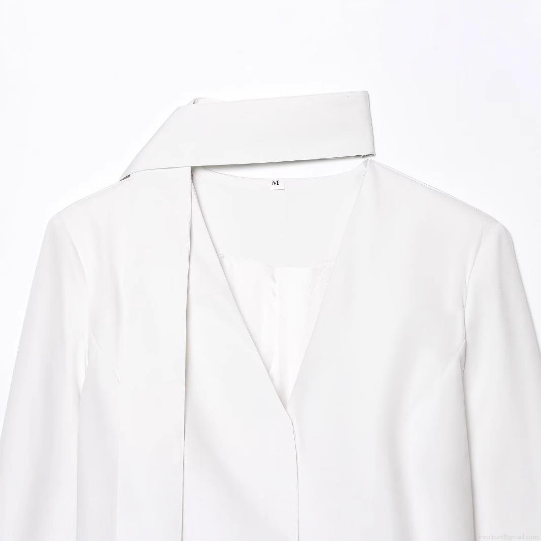 Women's Fashion White Scarf Neck Blazer Long Sleeve Single Breasted Woven Jacket Slim Fit Solid Casual Office Tops Streetwear