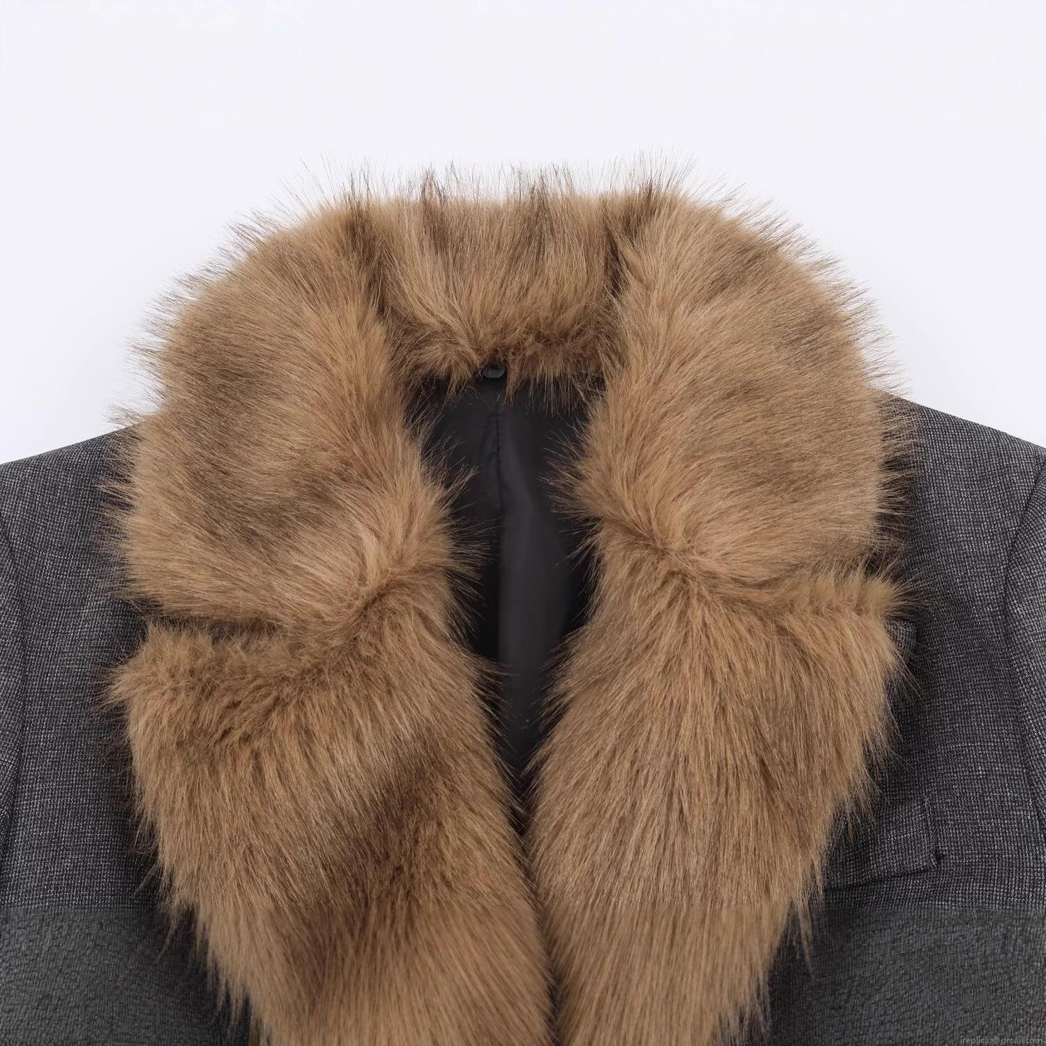 • Women's Faux Fur Collar Blazer Jacket Loose Fit Woolen Textured Single Breasted Long Sleeve Outerwear With Pockets For Autumn Winter Street Style