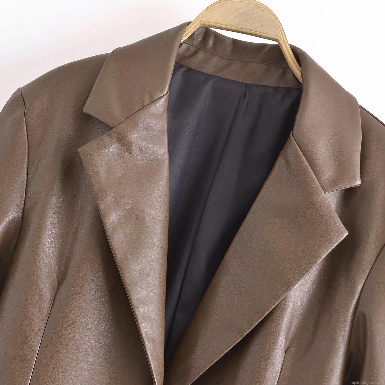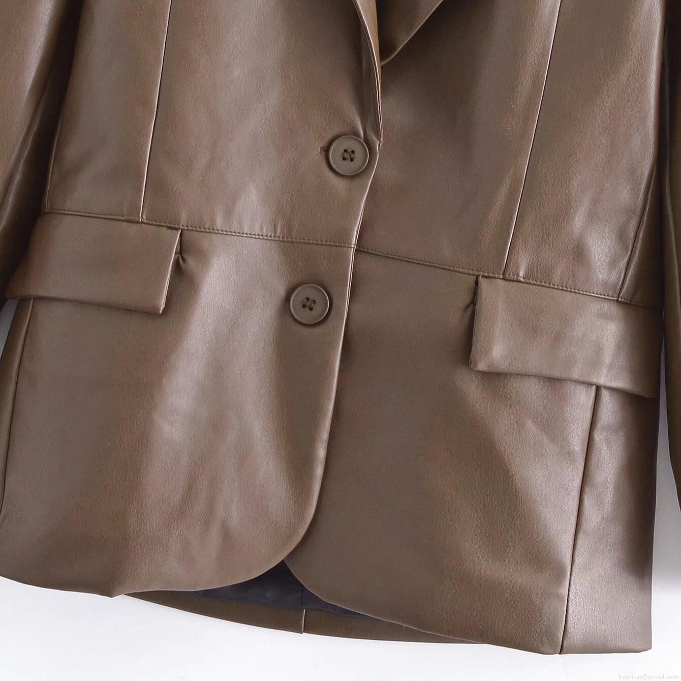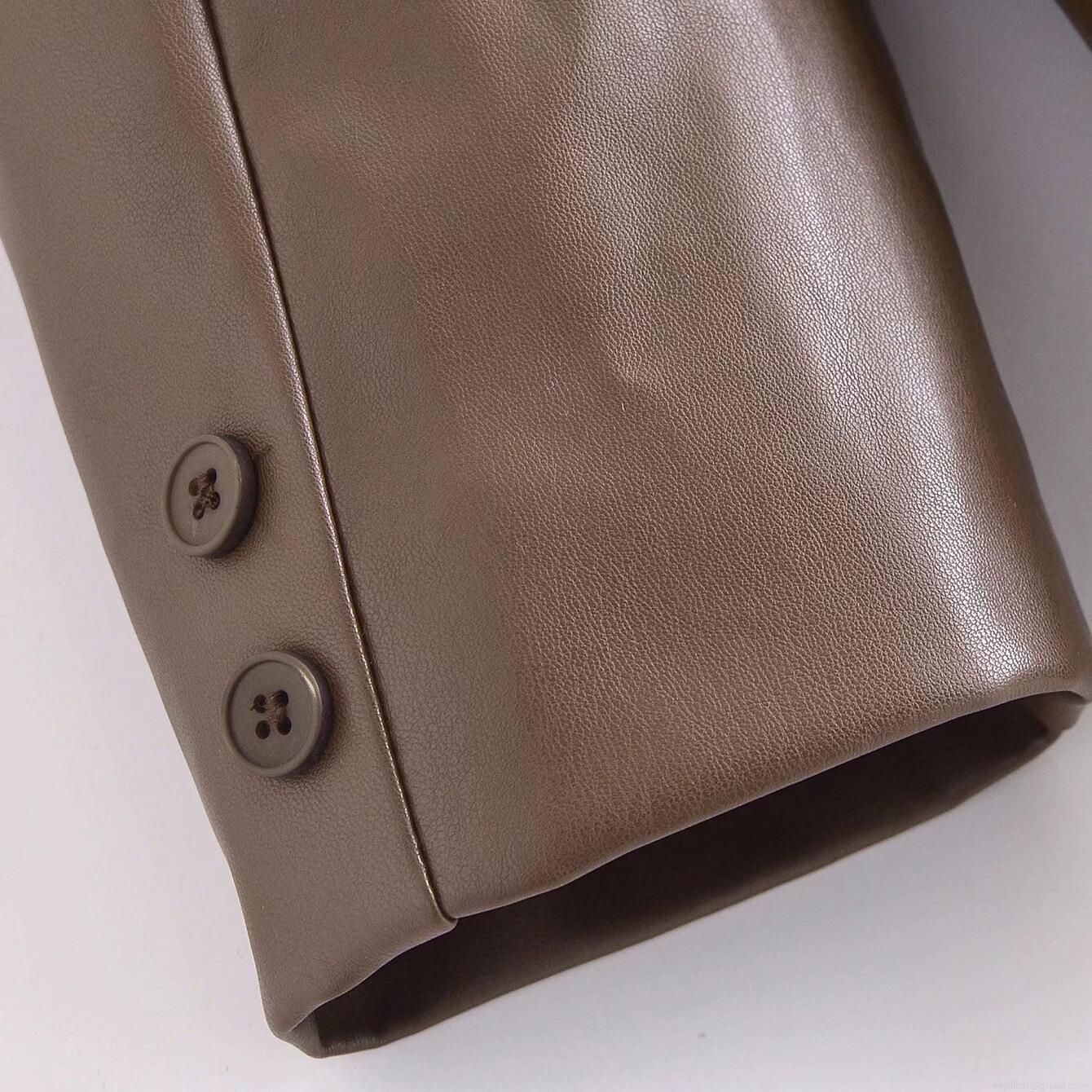 • Women's Faux PU Leather Blazer Jacket Autumn Casual Loose Fit Long Sleeve Button Up Coat Elegant Office Lady Streetwear Solid Color Outerwear