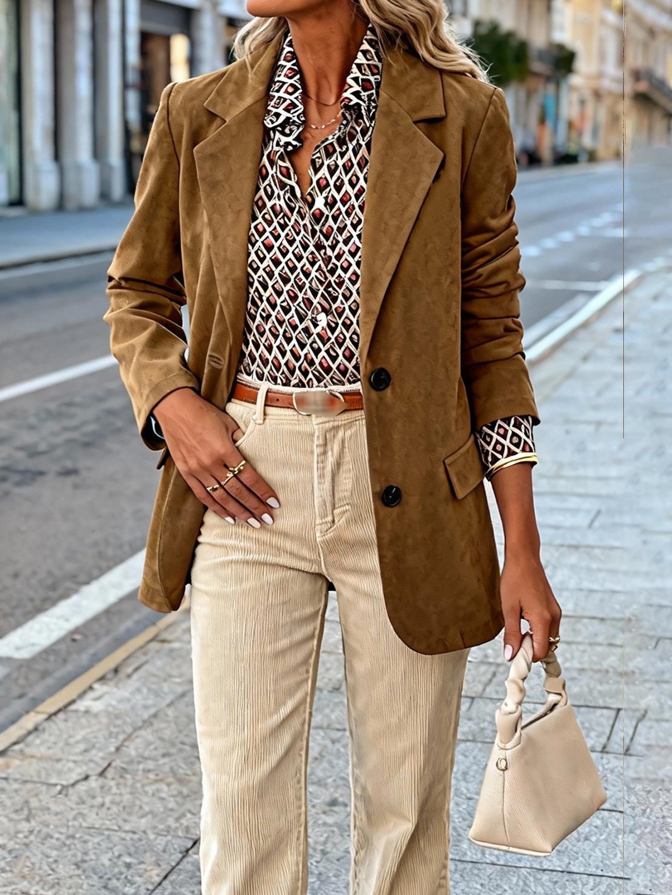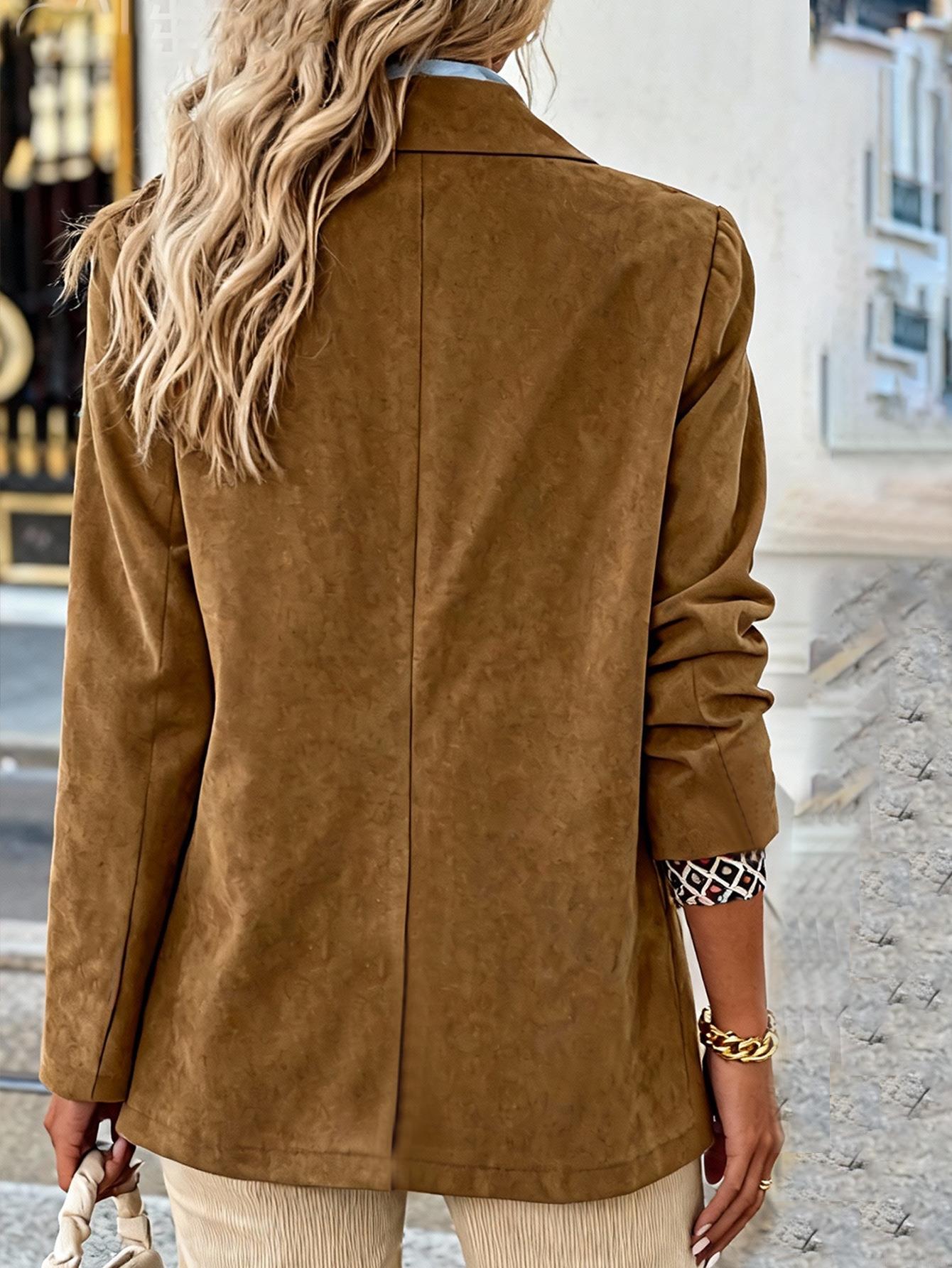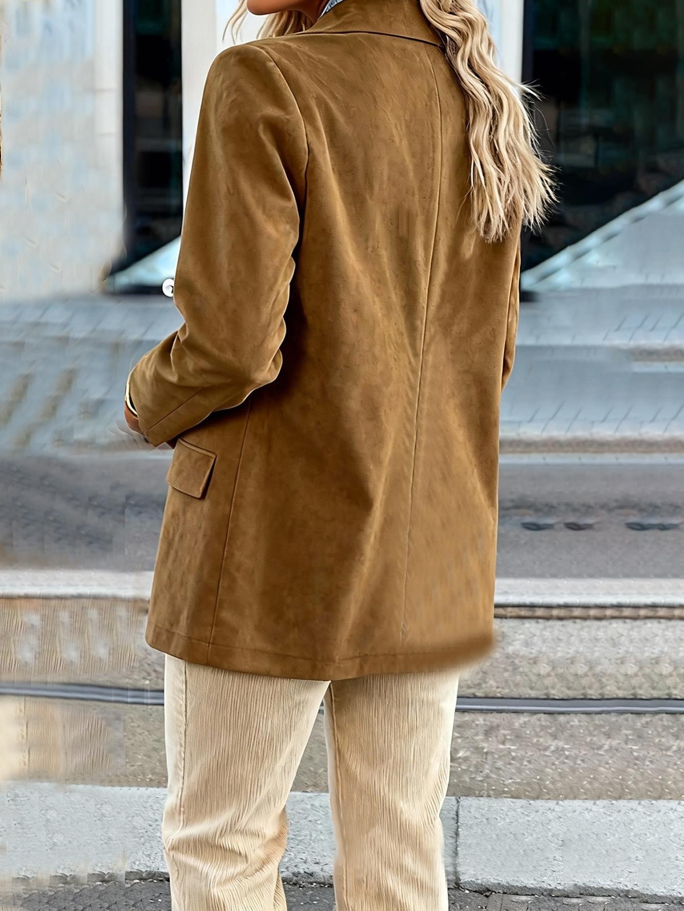 • Women's Faux Suede Blazer Jacket 100% Polyester Single Breasted Two Button Lapel Mid Length Outerwear For Office Commuting Elegant Casual Autumn Coat