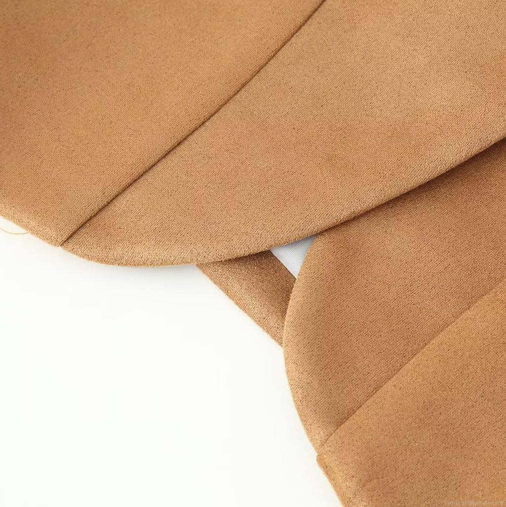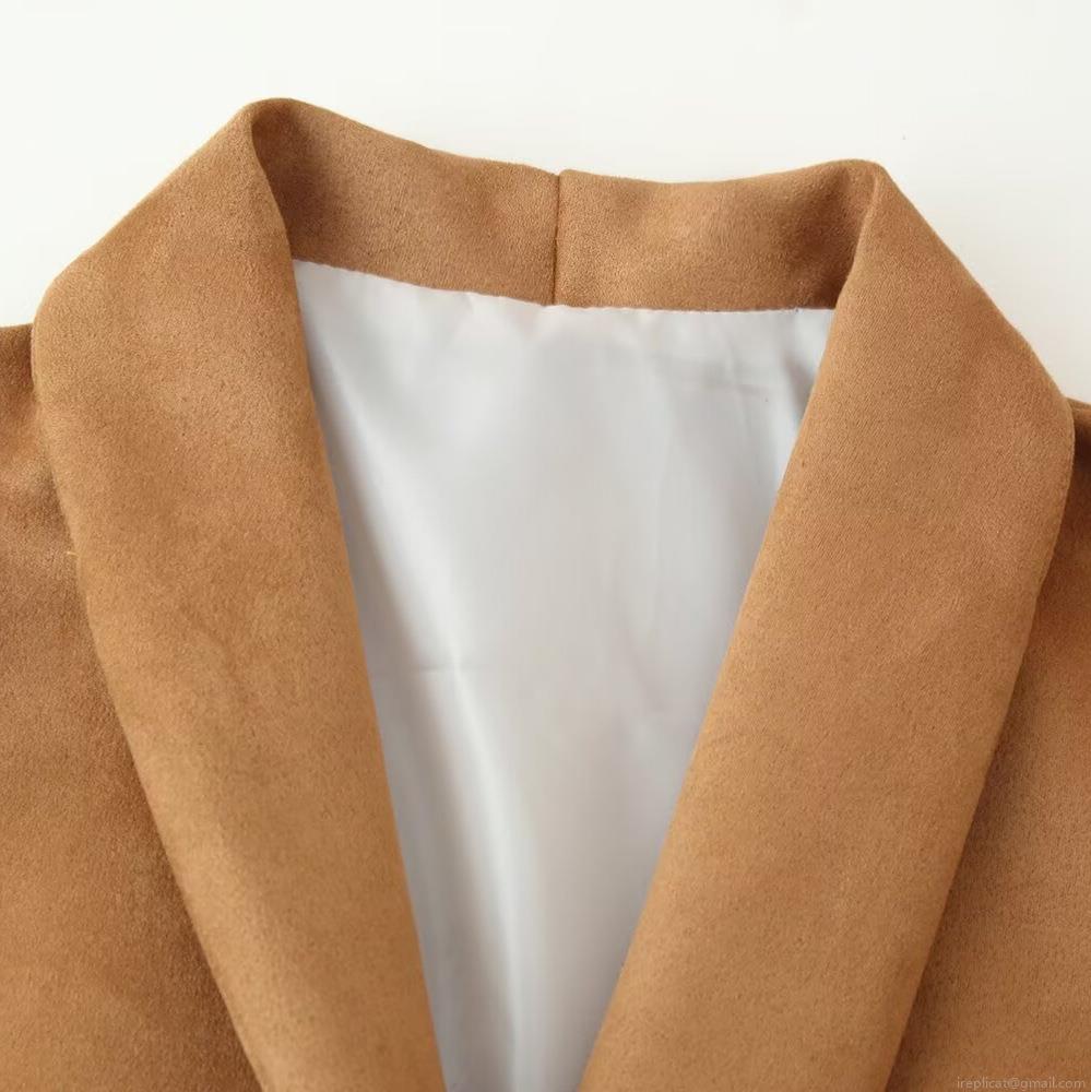 • Women's Faux Suede Blazer Jacket Elegant V-Neck Single Button Short Coat Casual Office Wear Autumn Fashion Outerwear Versatile Solid Color Top