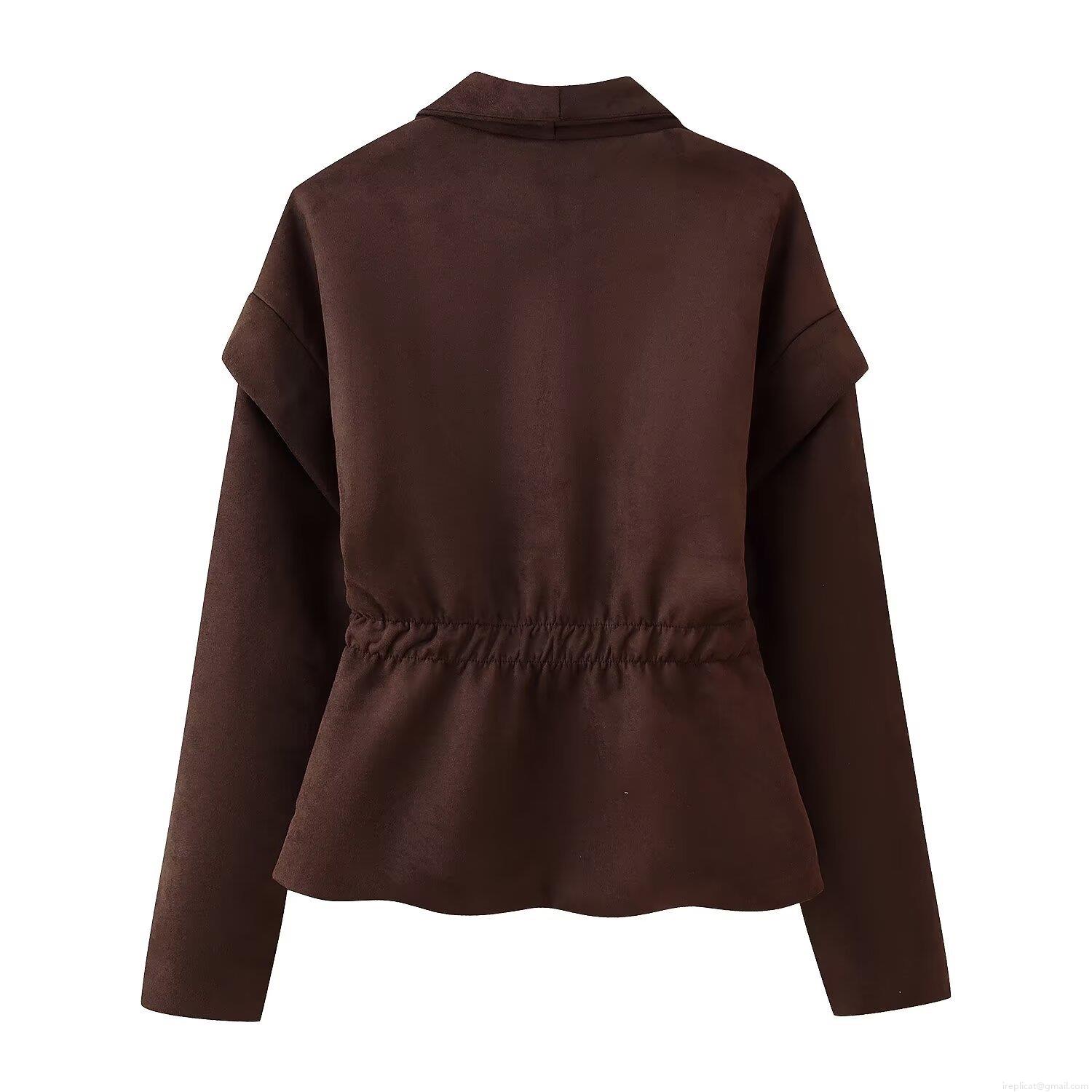 Women's Faux Suede Blazer Jacket Long Sleeve Patchwork Slim Fit Single Button Outerwear Autumn Fashion Streetwear Casual Women Blazers Top