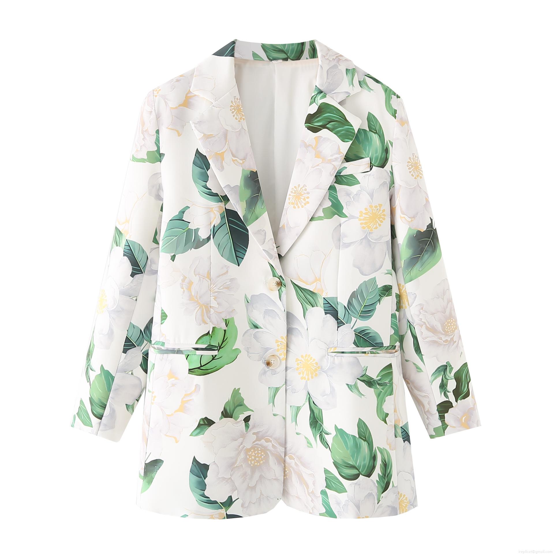 • Women's Floral Print Blazer Jacket Polyester Lapel Collar Single Breasted Long Sleeve Casual Outerwear With Pockets European Street Style Fashion