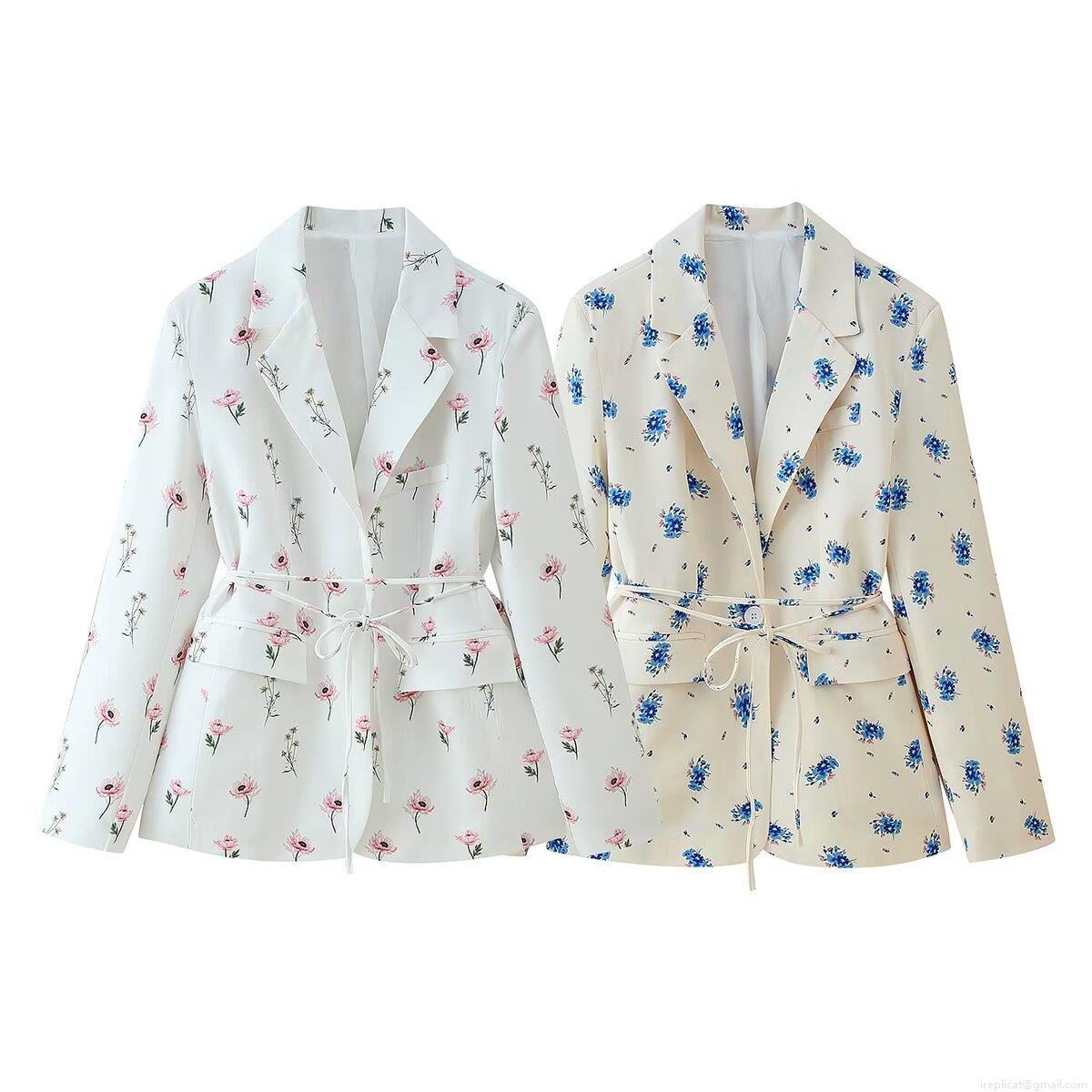 • Women's Floral Print Polyester Blazer Notched Lapel Long Sleeve Suit Jacket With Waist Tie Chic Streetwear Fall Outerwear For Women Daily Commute